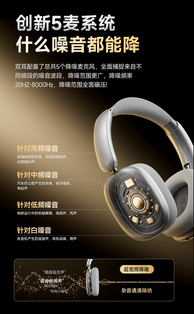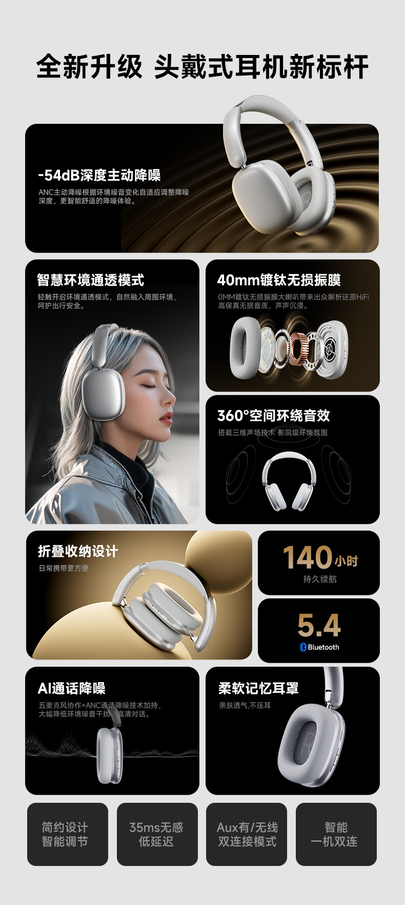 • ANC 능동형 소음 감소★360°서라운드 사운드★50시간의 긴 배터리 수명