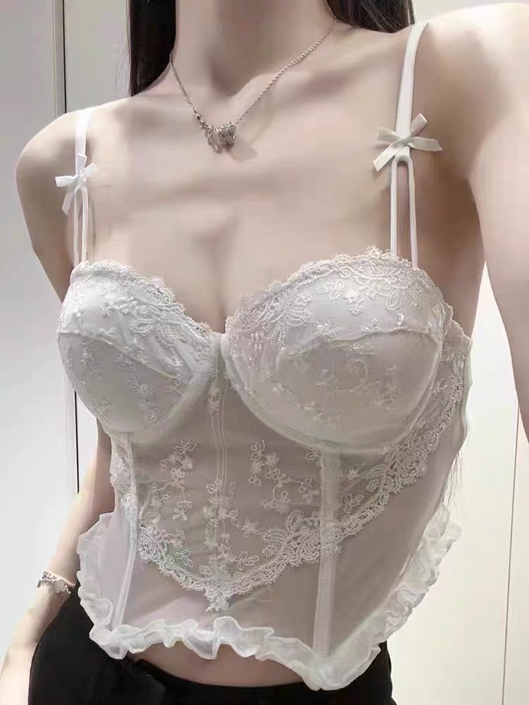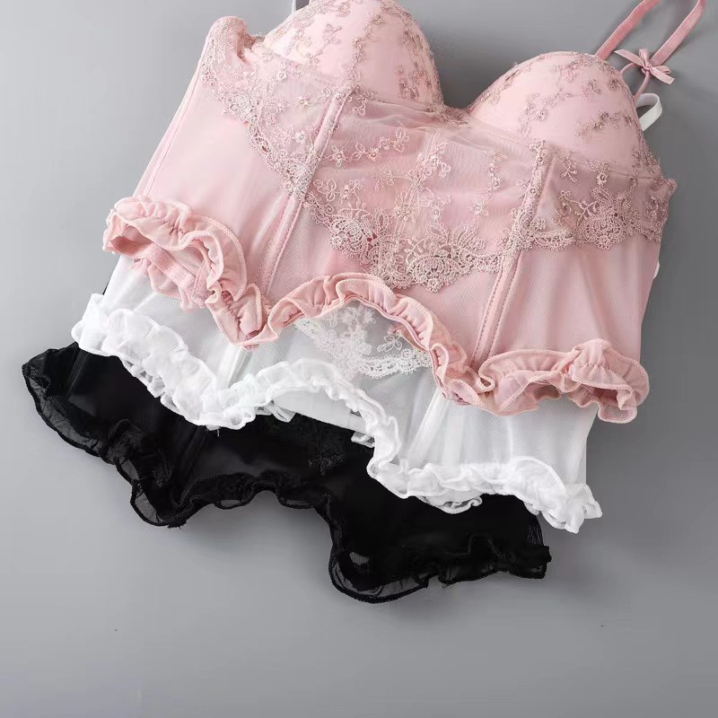 순수한 욕망 레이스 바느질 메쉬 내부 카미 솔 여성의 겨울 슬림 핏 슬리밍 핑크 짧은 달콤하고 뜨거운 탑