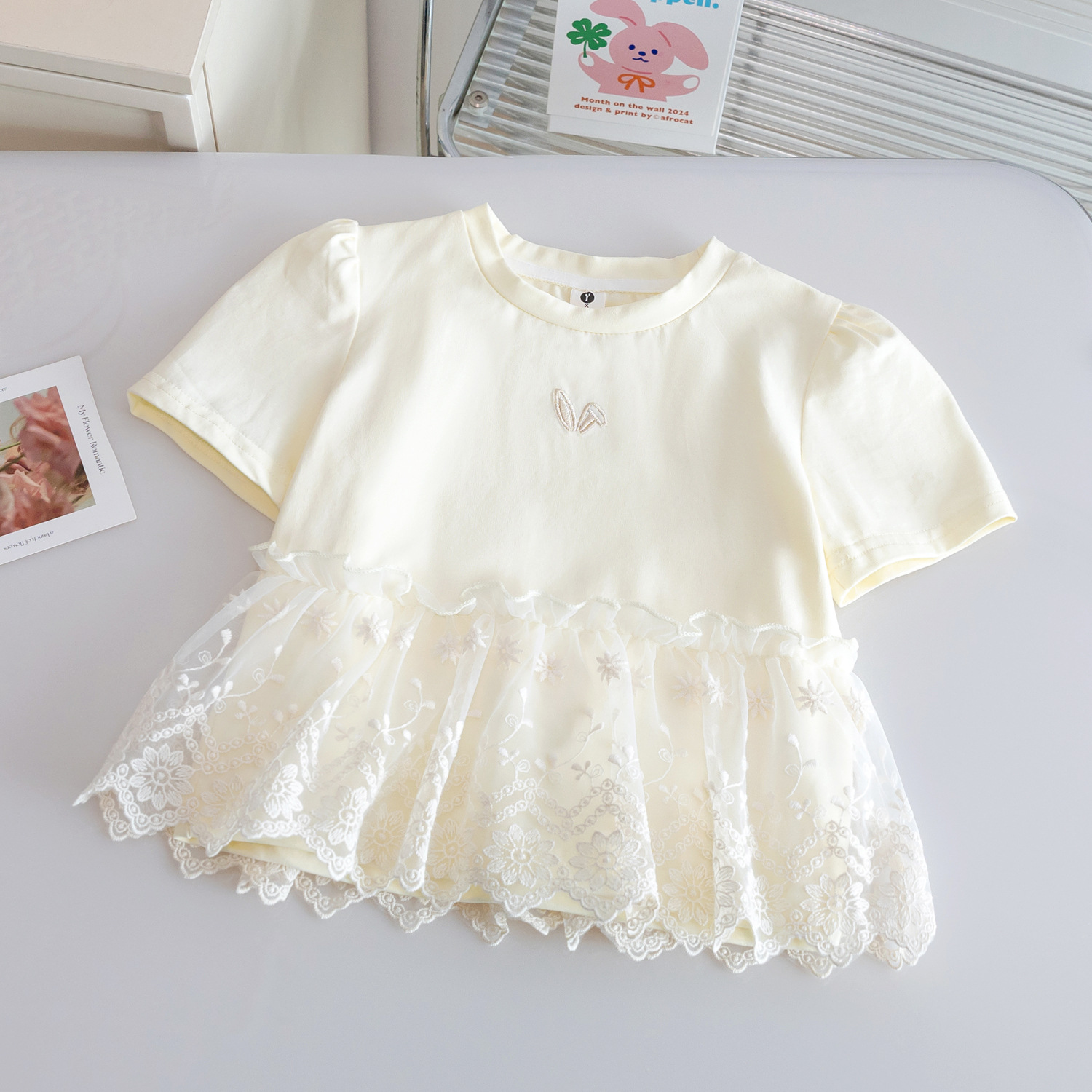 소녀를위한 아기 소녀의 스타일 반팔 티셔츠 바느질 메쉬 스커트 25 여름 새로운 디자인 센스 하이 엔드 타이드 탑 3