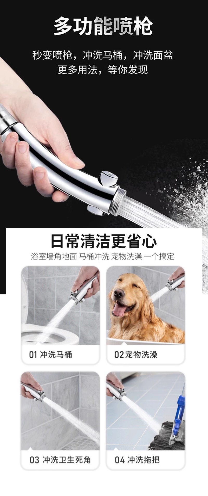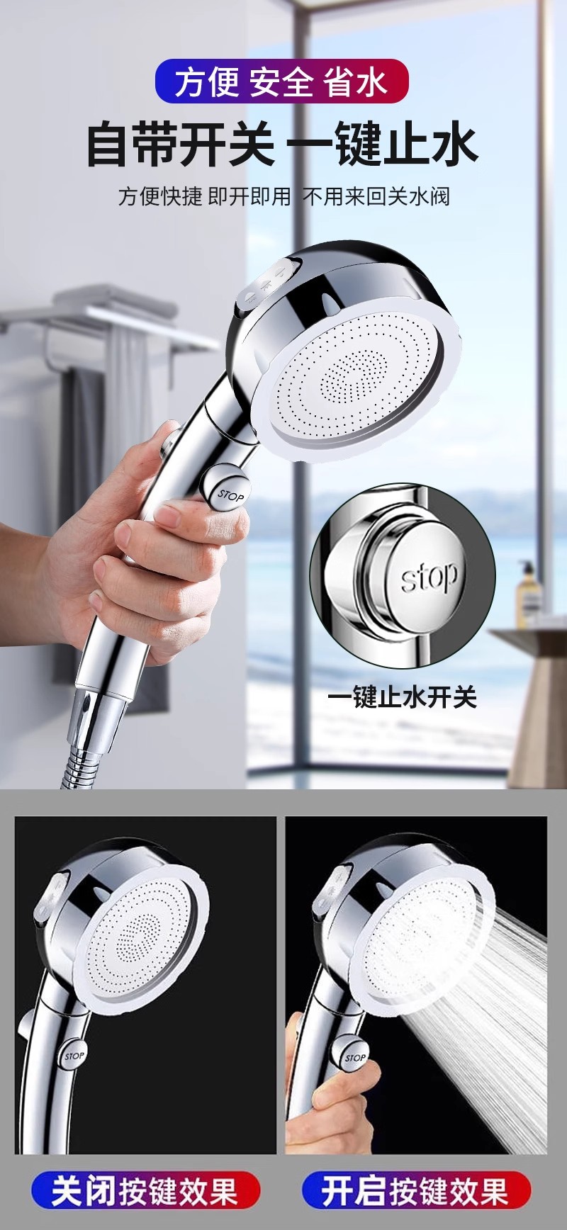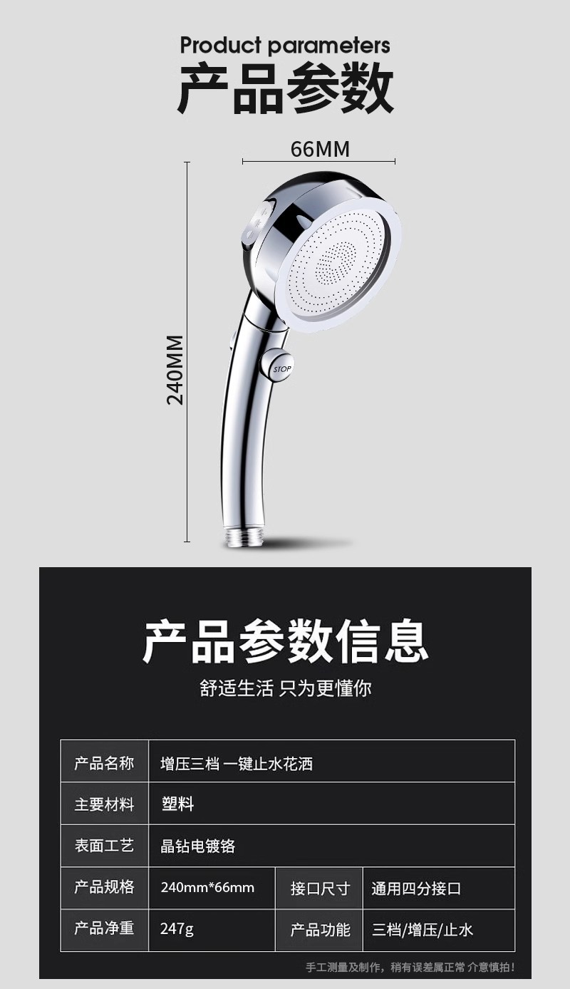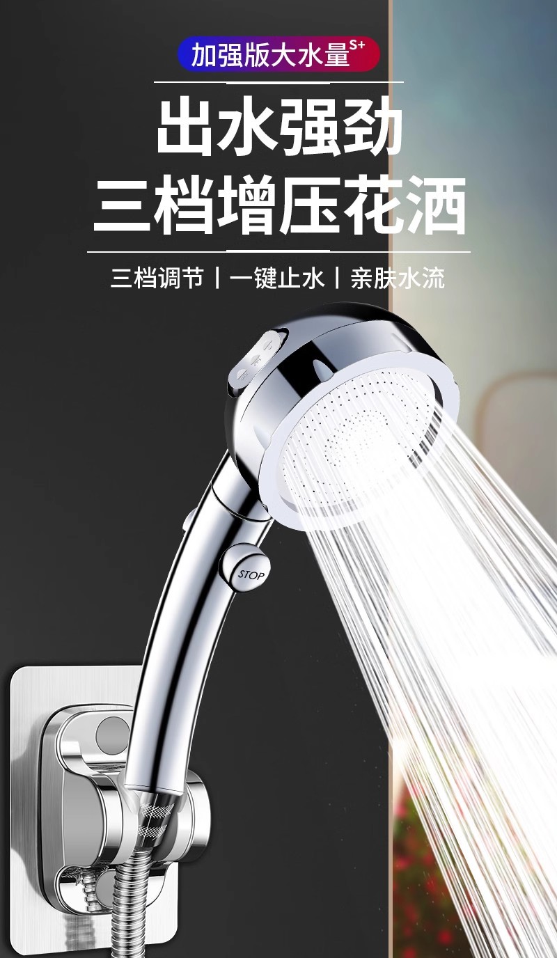 가압 샤워 샤워 가정용 욕실 욕조 가압 비 샤워 연꽃 노즐 원 버튼 워터 스톱스토어 가기