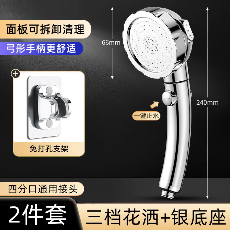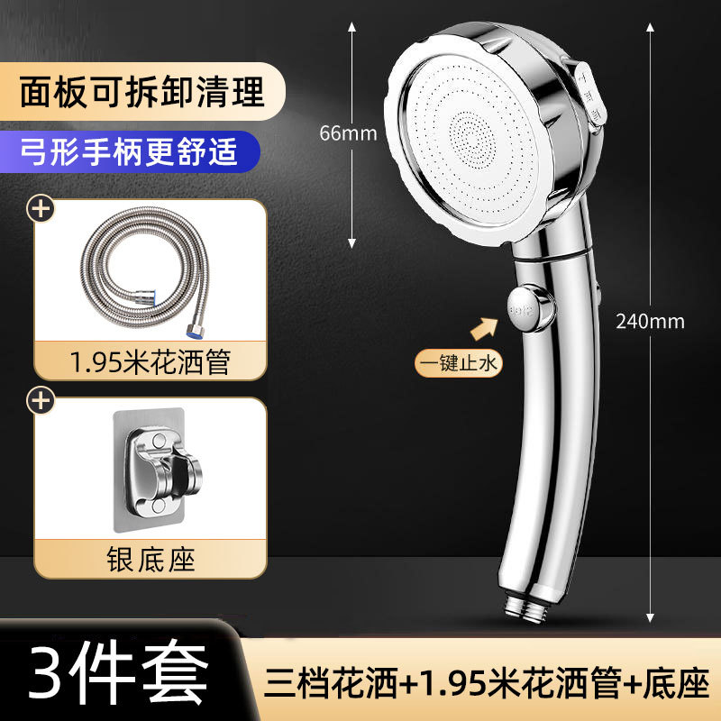 • 실버 3단 원터치 지수 샤워기 + 실버 베이스