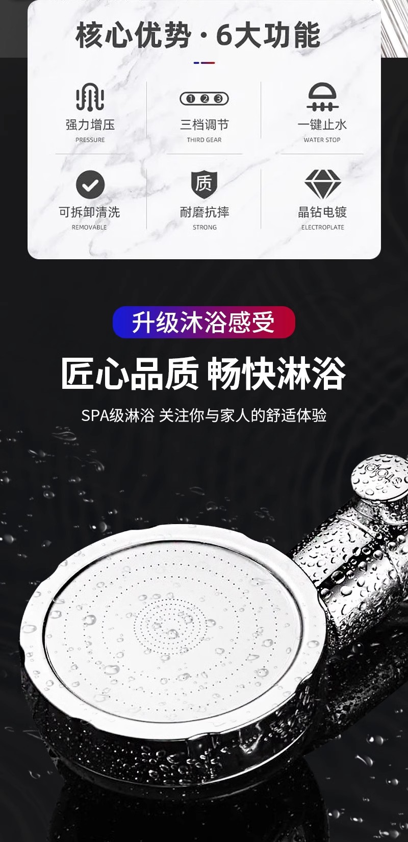 가압 샤워 샤워 가정용 욕실 욕조 가압 비 샤워 연꽃 노즐 원 버튼 워터 스톱