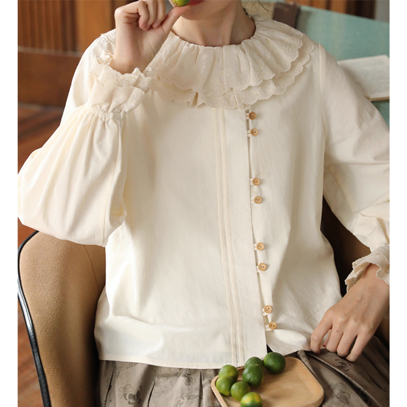 더블 레이스 칼라 자카드 셔츠 여성의 봄 프랑스 복고풍 디자인 탑스토어 가기