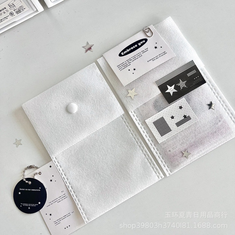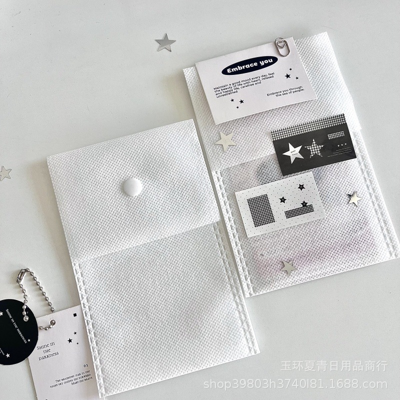 INS 두꺼운 카드 포장 재료 높은 색상 값 흰색 부직포 포장 가방 작은 카드 소재 스티커 밀봉 포켓