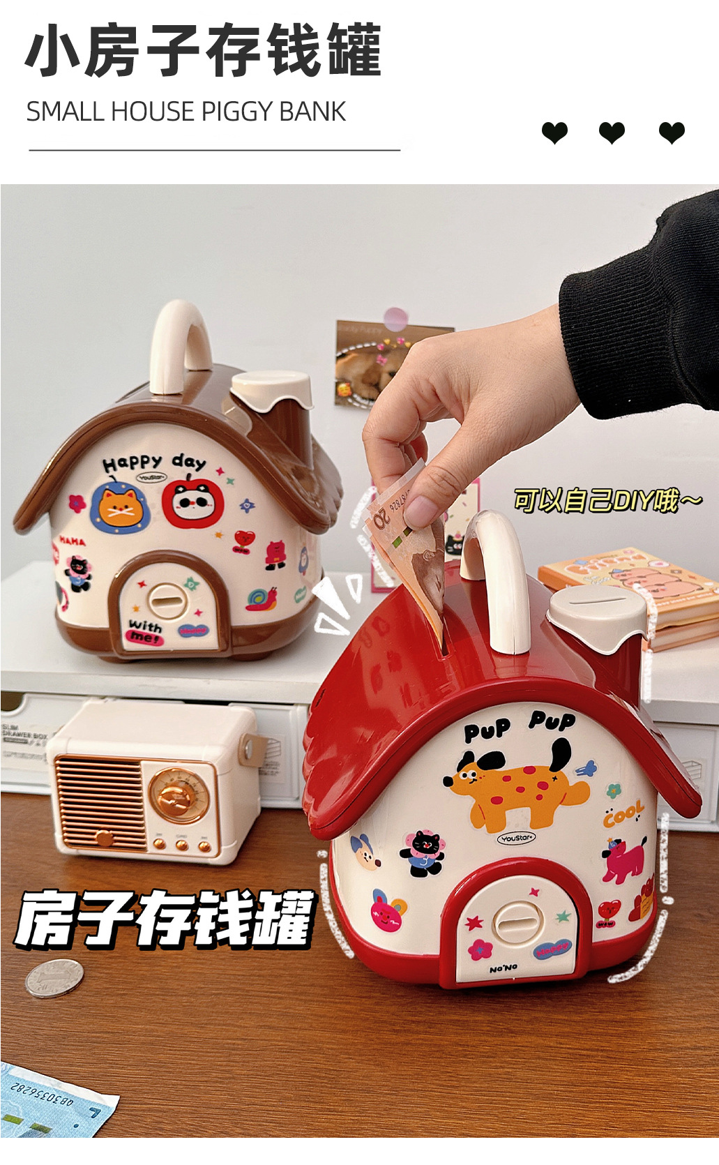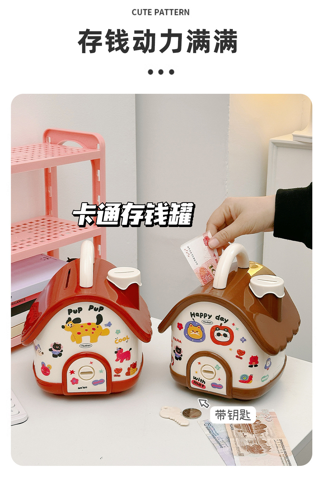 집 모양 돼지 저금통 도파민 돼지 저금통 소년과 소녀 휴일 선물은 바람직한 장난감 보관 상자에 보관할 수 있습니다.