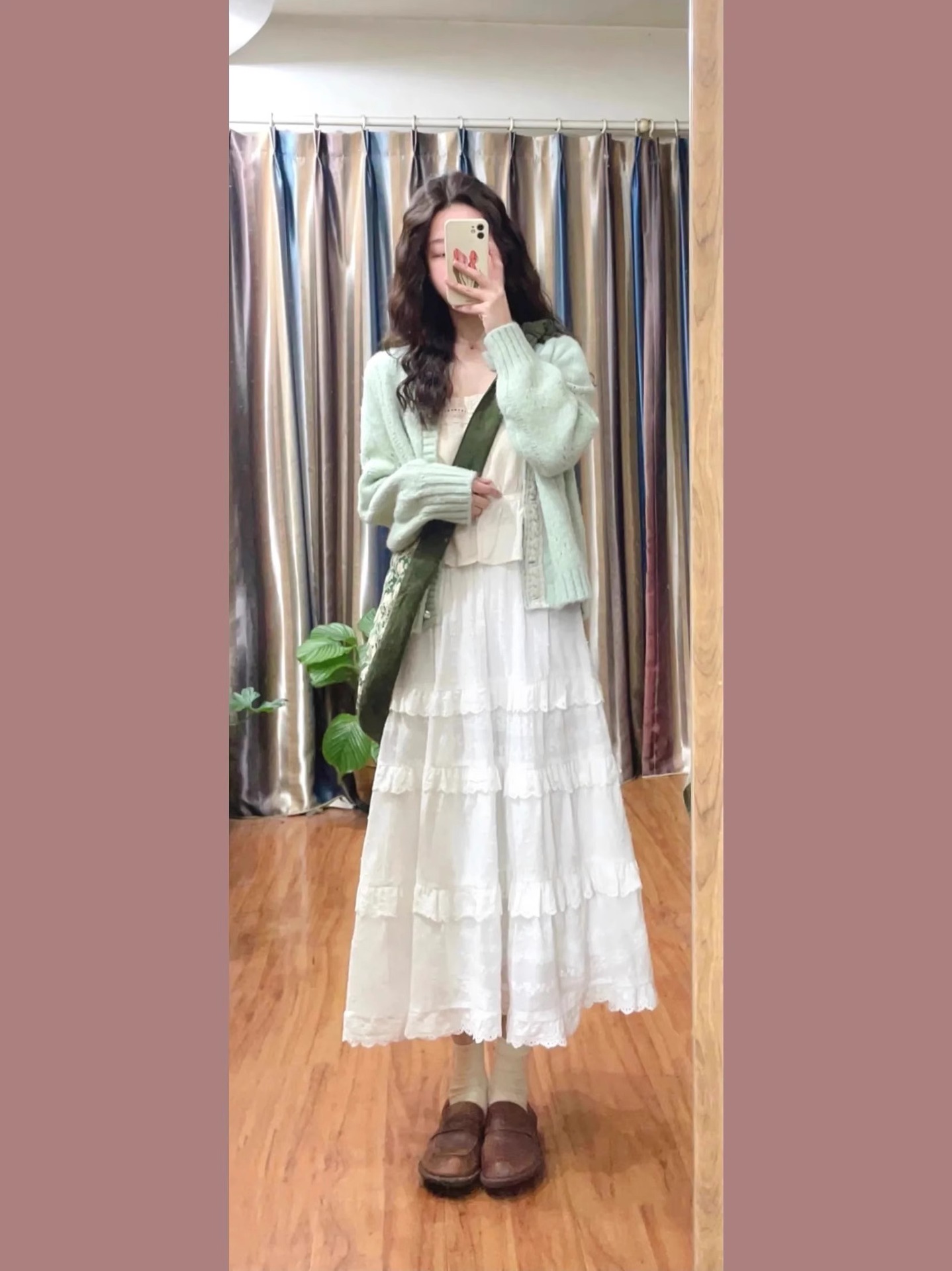 그린 레이스 디자인 센스 니트 스웨터 카디건 여성의 2025 년 새로운 봄과 가을 예술적 레트로 게으른 코트 탑