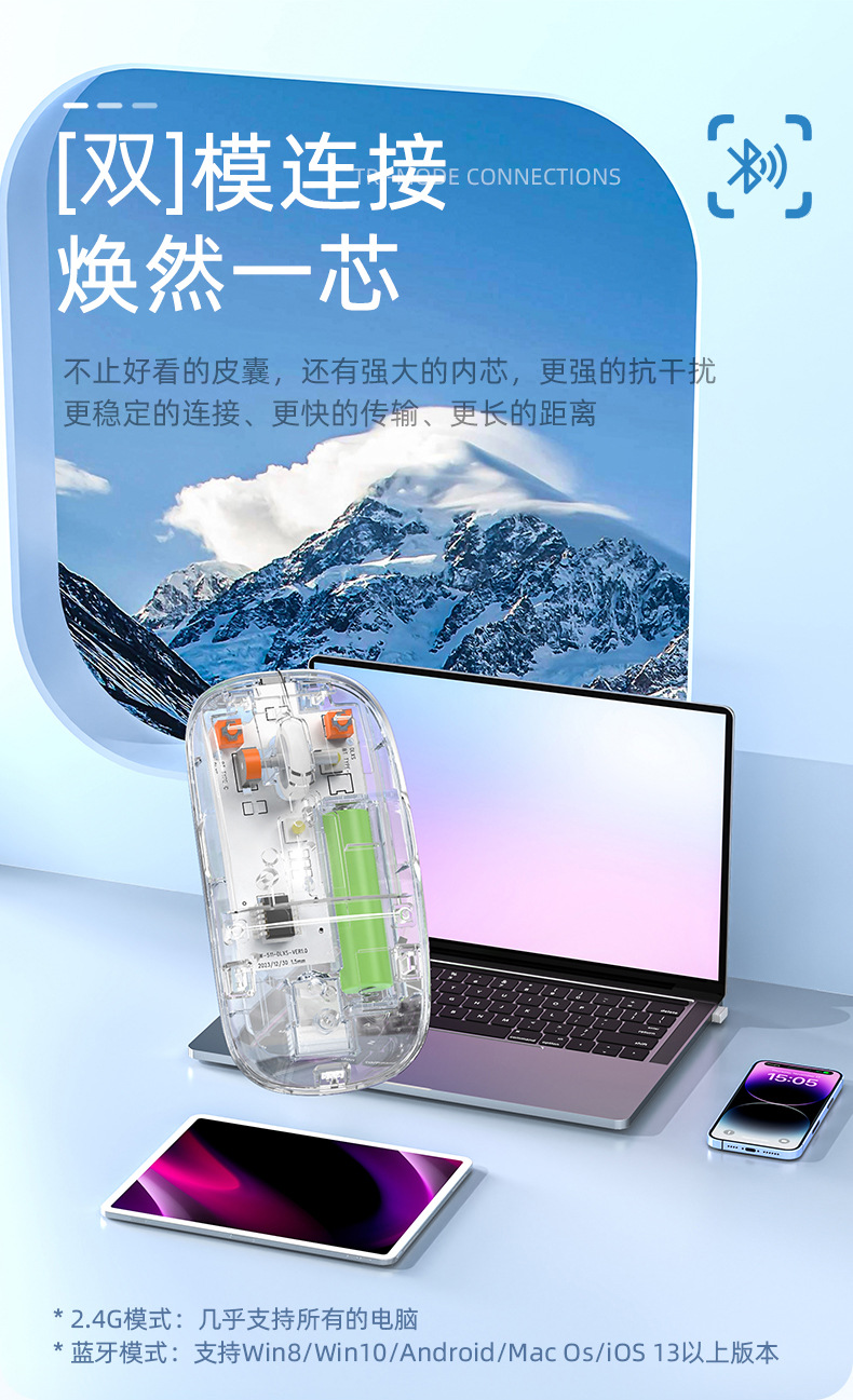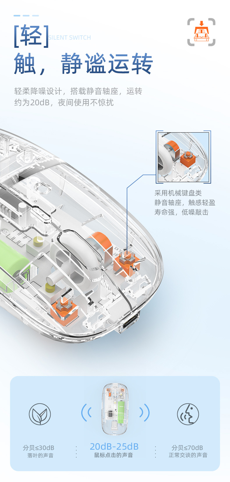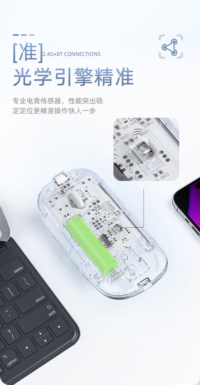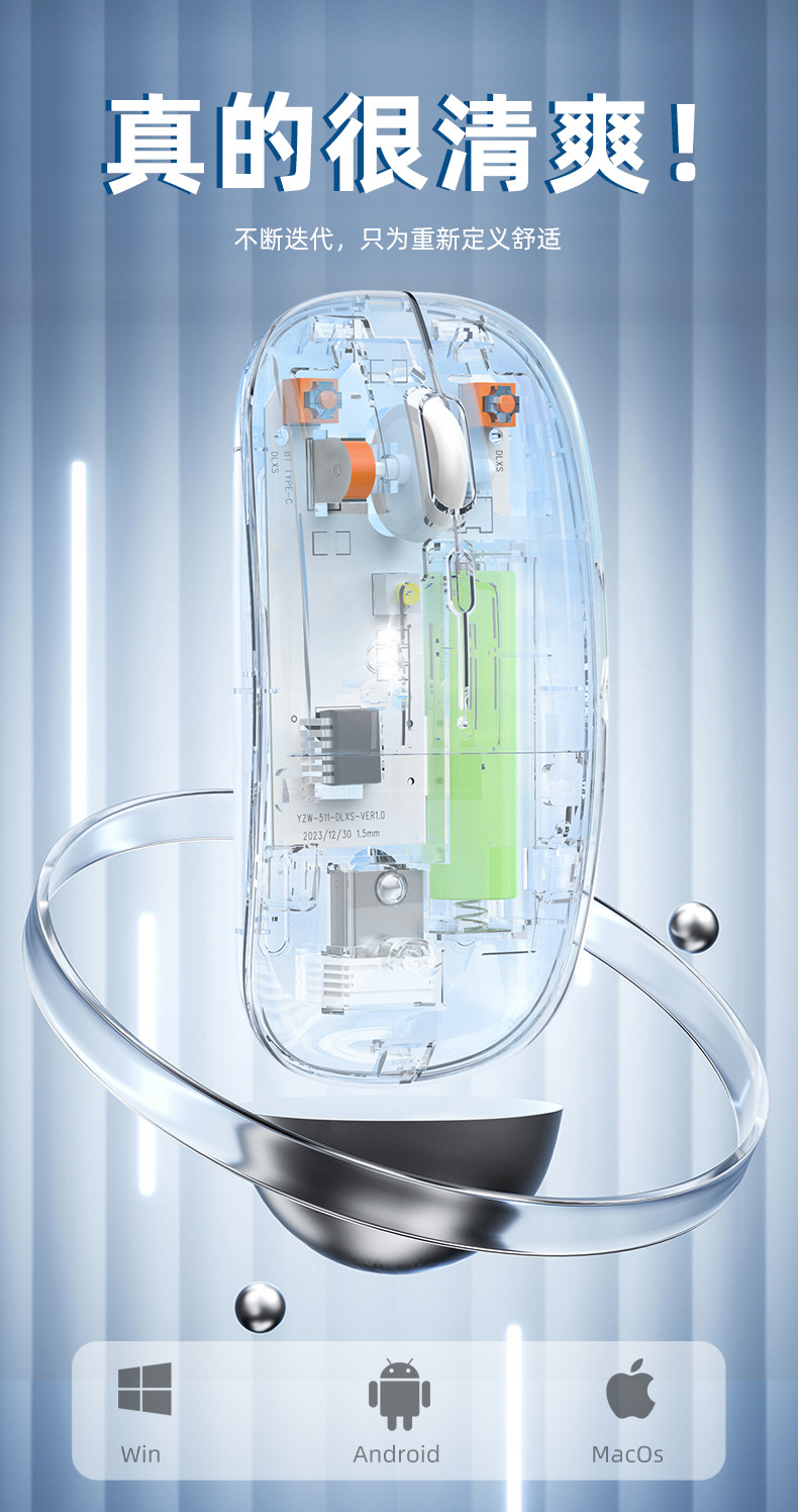 투명 마우스 무선 충전 디스플레이 전원 typec 충전식 자동 블루투스 듀얼 모드 사무용 마우스 공장스토어 가기