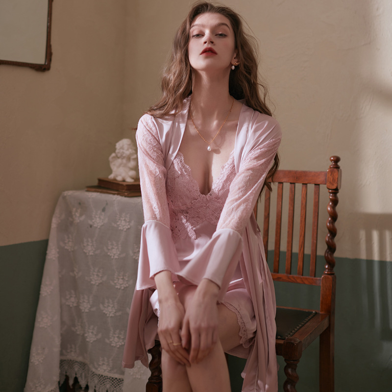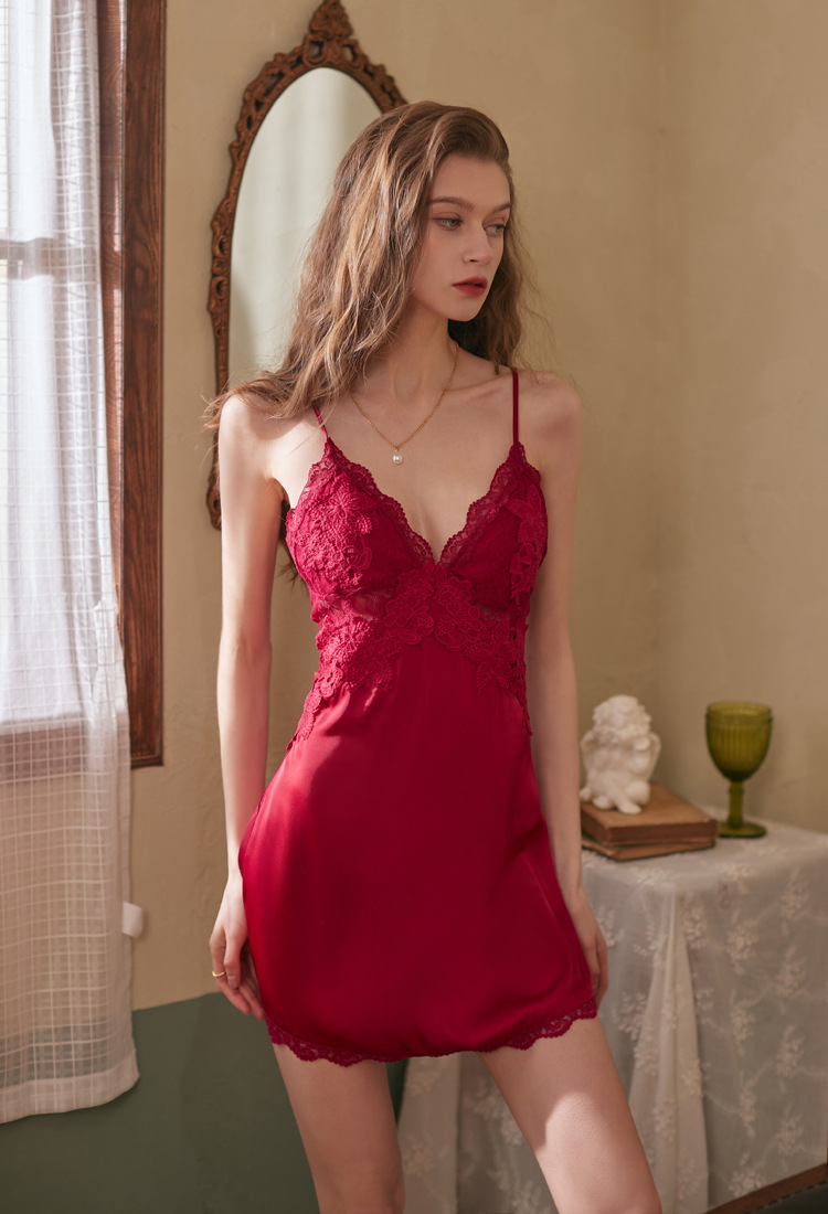 여름 잠옷 여성 로즈 인터넷 인기 섹시한 유혹 투피스 잠옷 소녀 아이스 실크 순수한 욕망 고급 슬링 나이트 가운스토어 가기