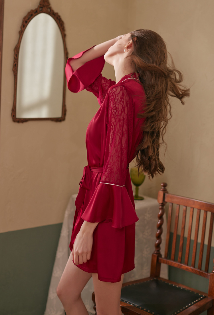 여름 잠옷 여성 로즈 인터넷 인기 섹시한 유혹 투피스 잠옷 소녀 아이스 실크 순수한 욕망 고급 슬링 나이트 가운