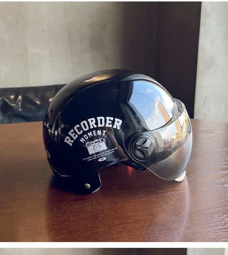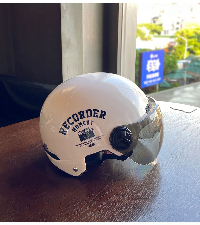 전기 자동차 오토바이 헬멧 검정 흰색 사계절 남여 커플 하프 헬멧 안전 헬멧 유행 브랜드 크리 에이 티브 사진