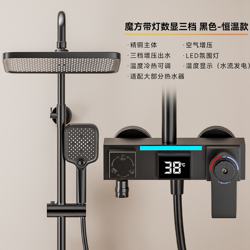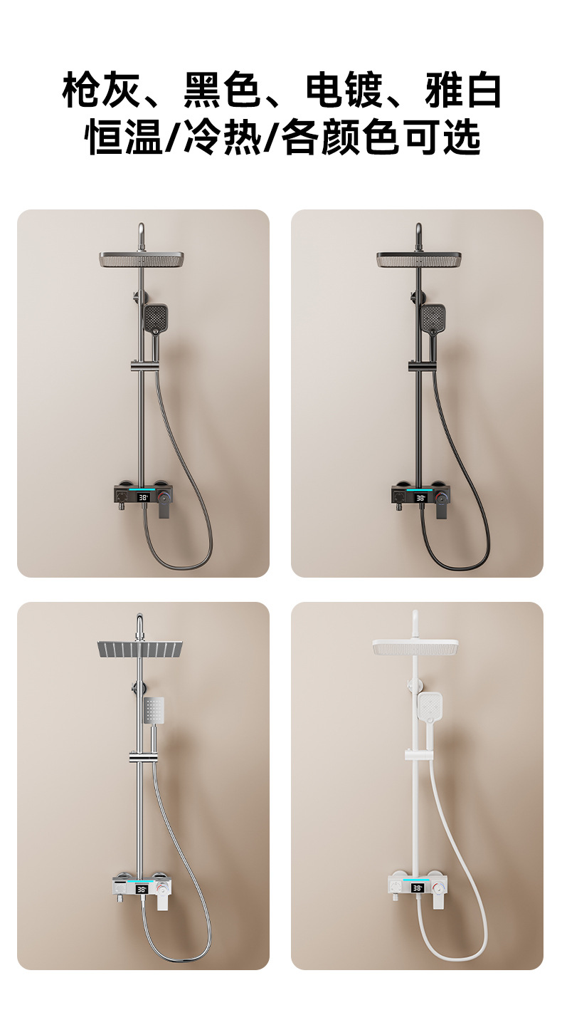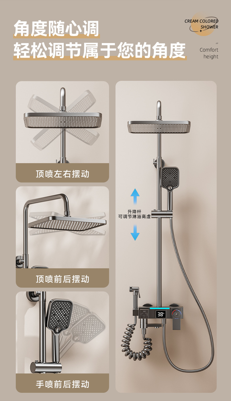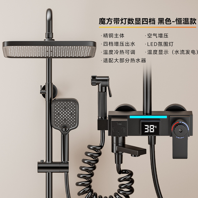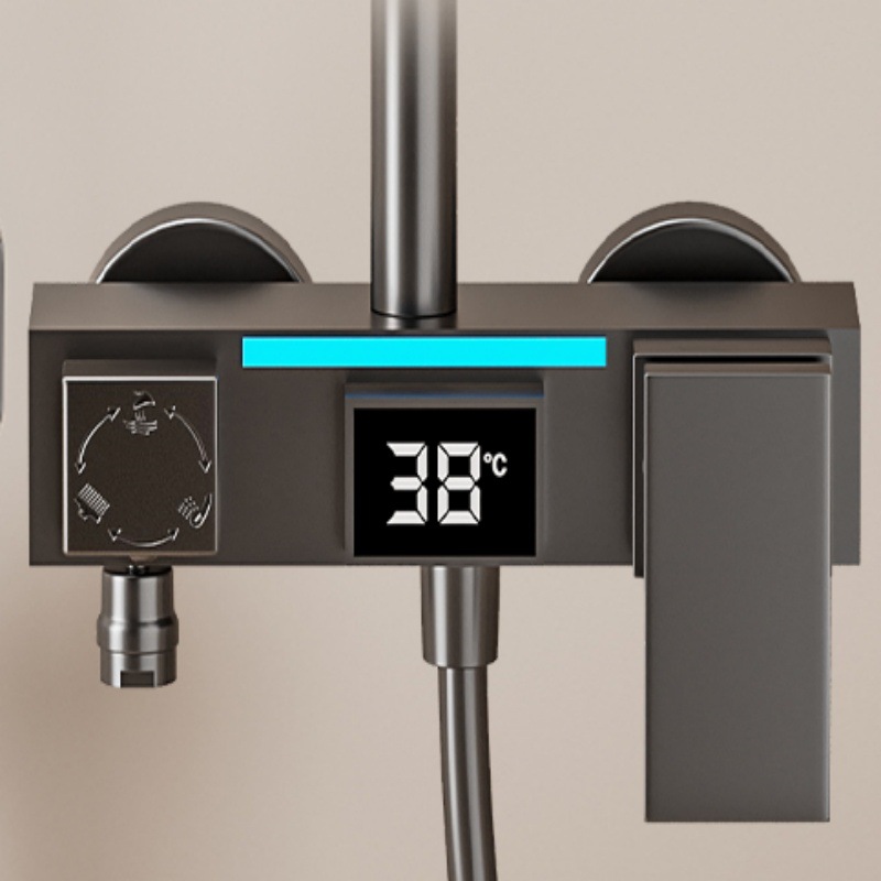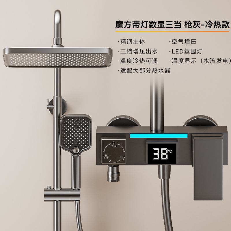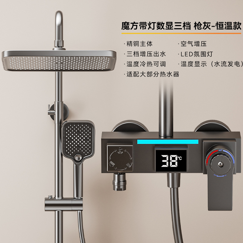 총 회색 사이버 축하 디지털 디스플레이 샤워 세트 가구 일정한 온도 샤워 욕실 비 부스터 노즐