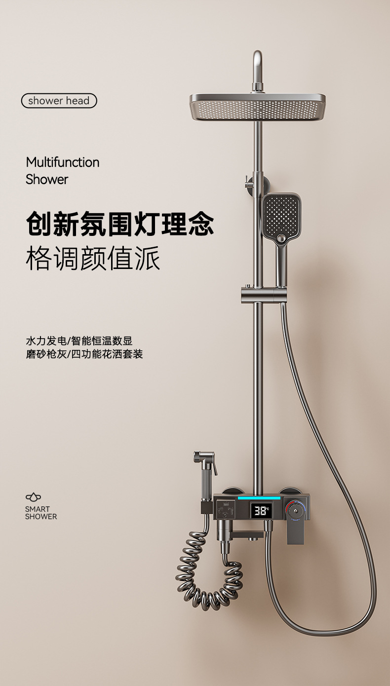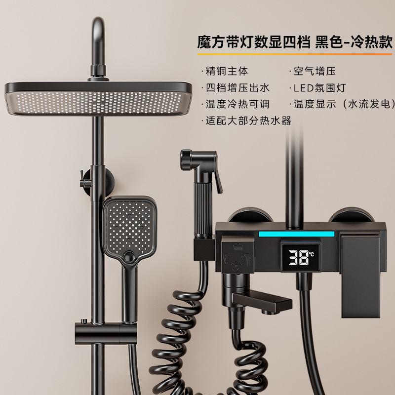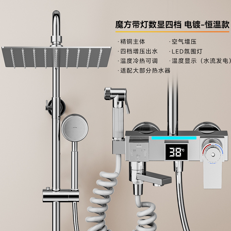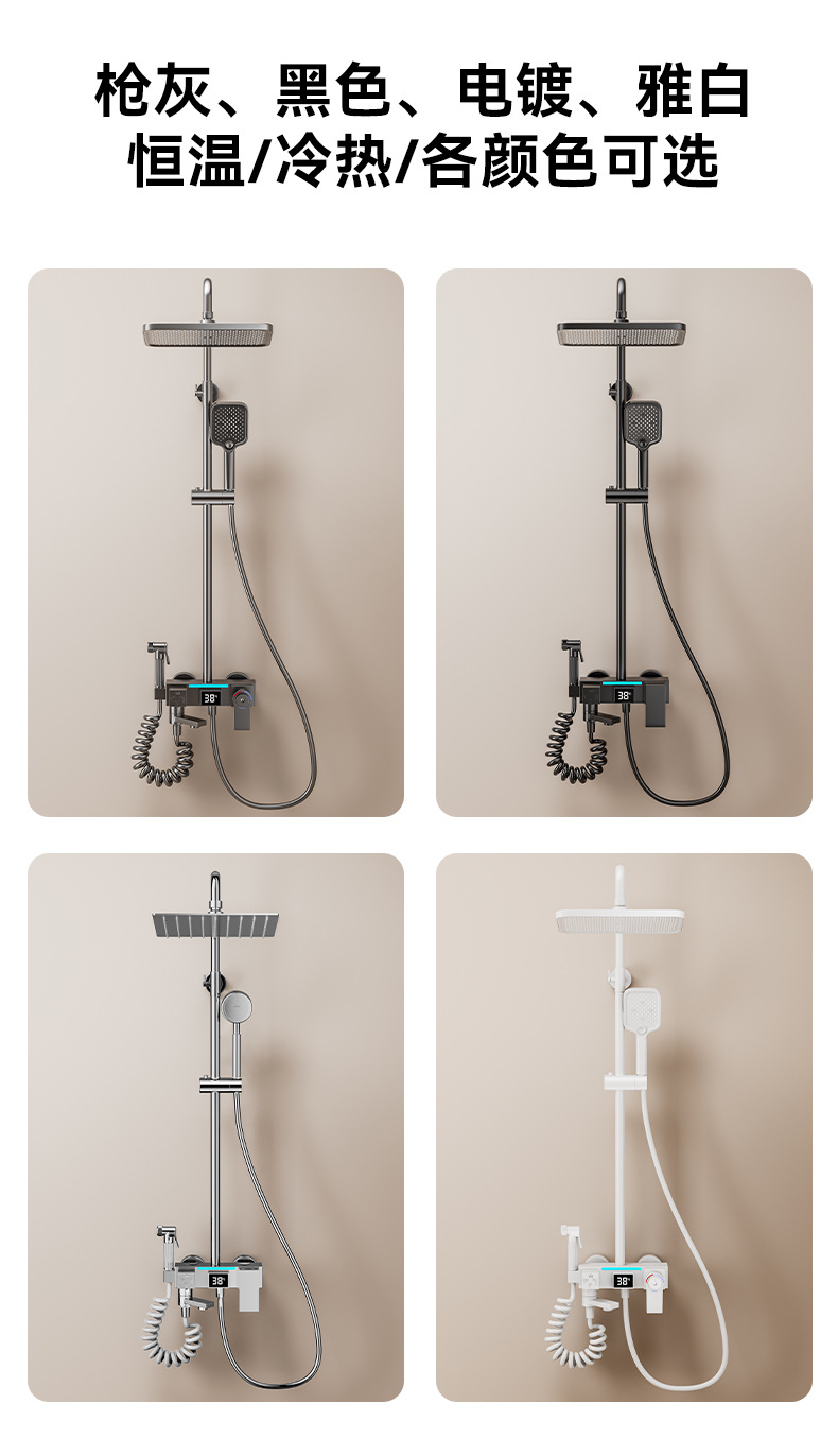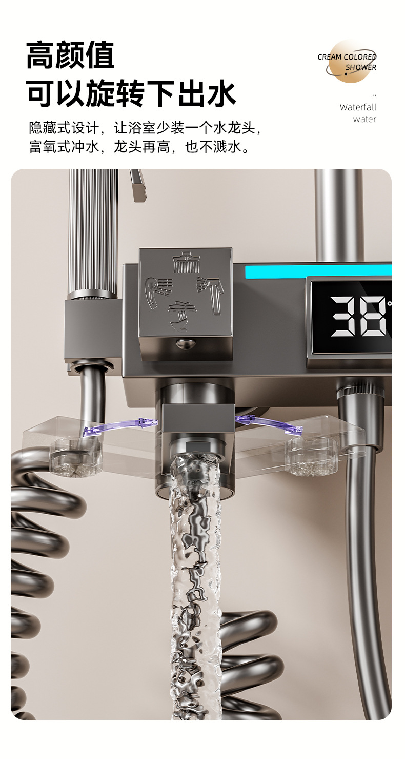 총 회색 사이버 축하 디지털 디스플레이 샤워 세트 가구 일정한 온도 샤워 욕실 비 부스터 노즐