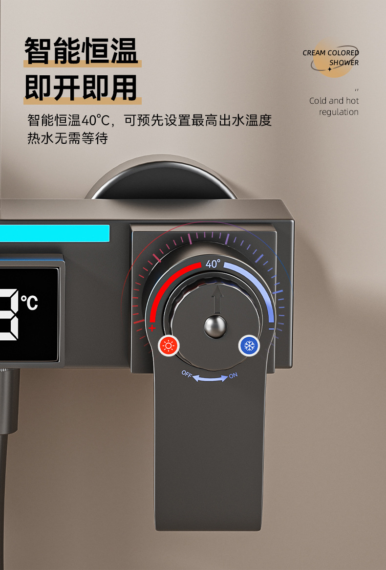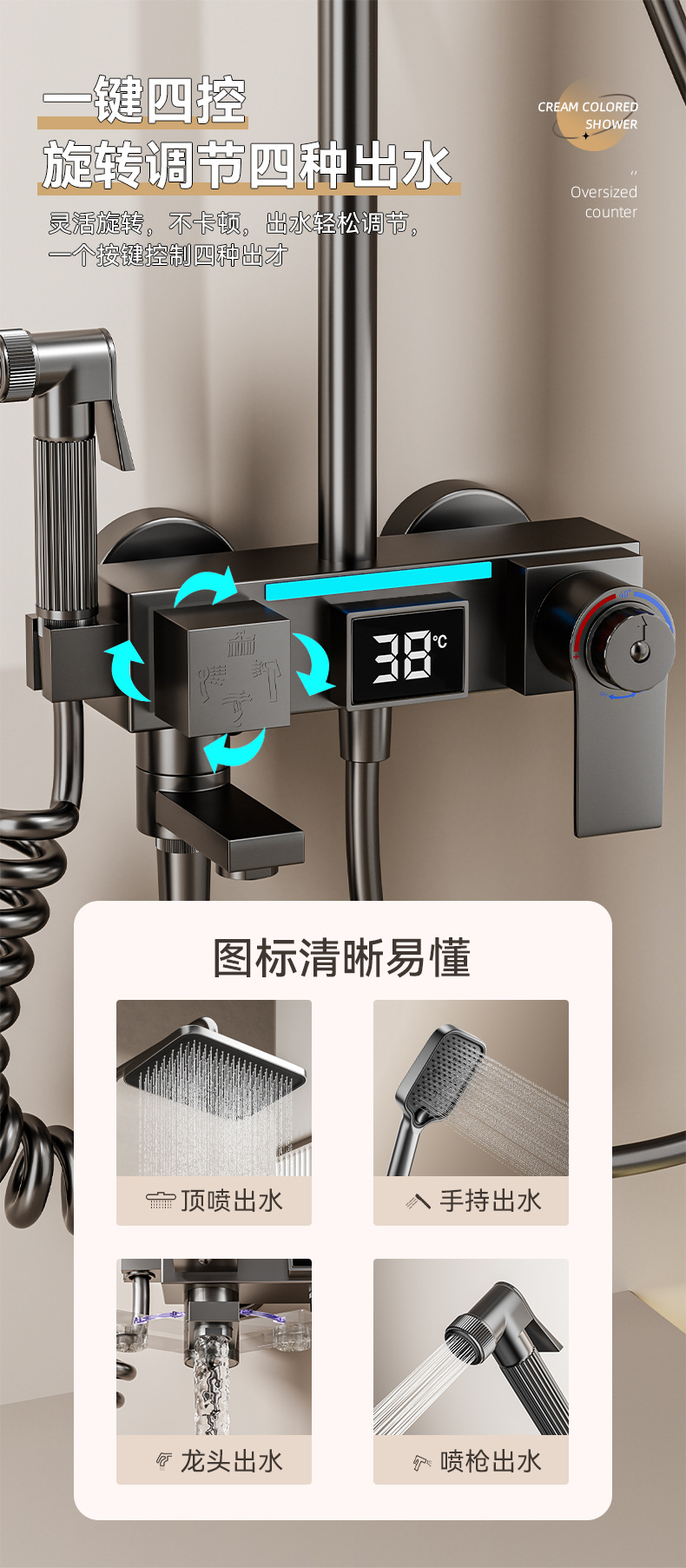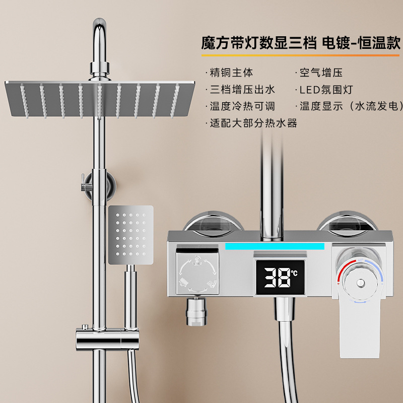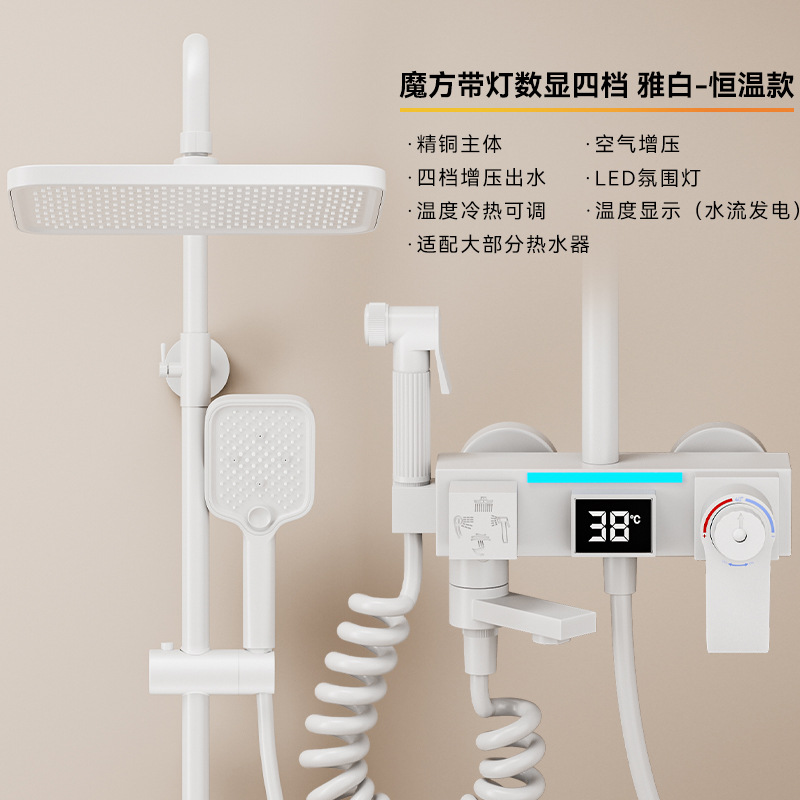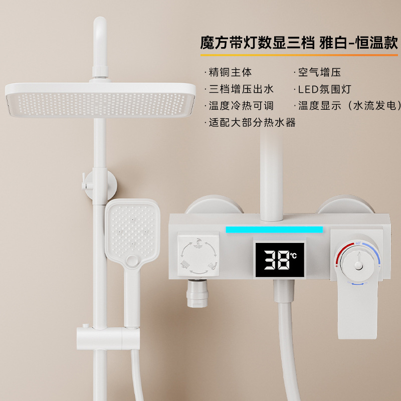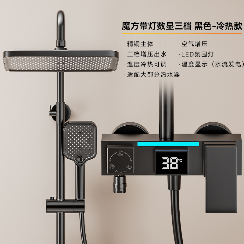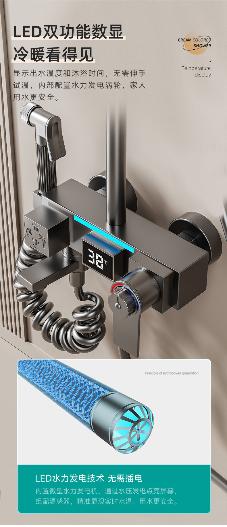 총 회색 사이버 축하 디지털 디스플레이 샤워 세트 가구 일정한 온도 샤워 욕실 비 부스터 노즐