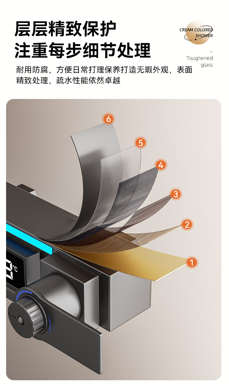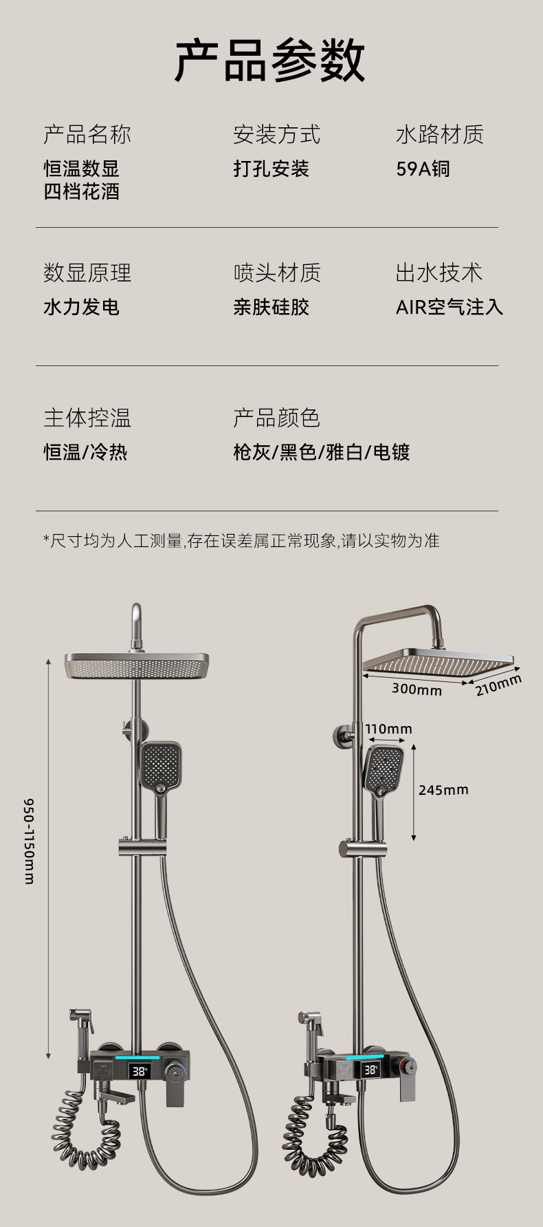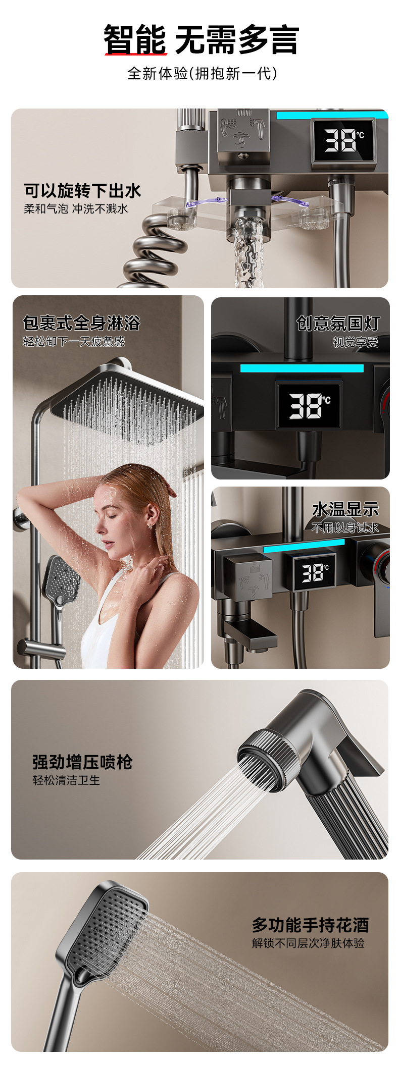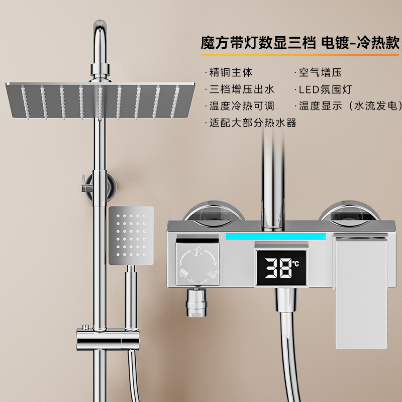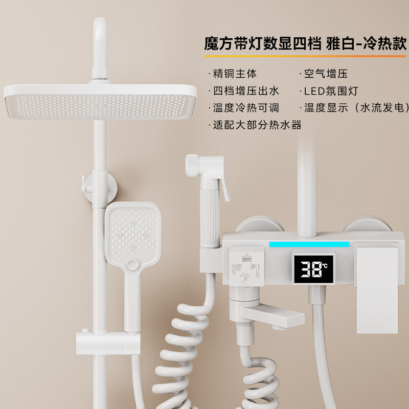 총 회색 사이버 축하 디지털 디스플레이 샤워 세트 가구 일정한 온도 샤워 욕실 비 부스터 노즐