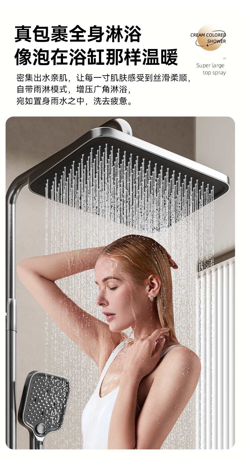 총 회색 사이버 축하 디지털 디스플레이 샤워 세트 가구 일정한 온도 샤워 욕실 비 부스터 노즐스토어 가기
