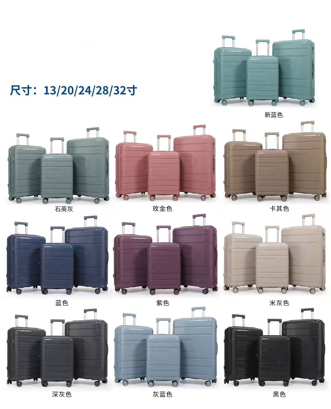 처리 PP 3 피스 트롤리 케이스 20 인치 탑승 가방 24 인치 28 인치 범용 휠 수하물 남성과 여성스토어 가기
