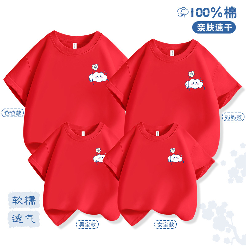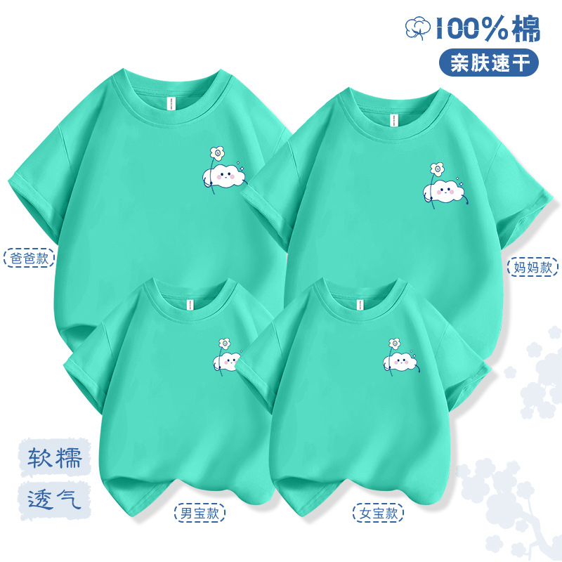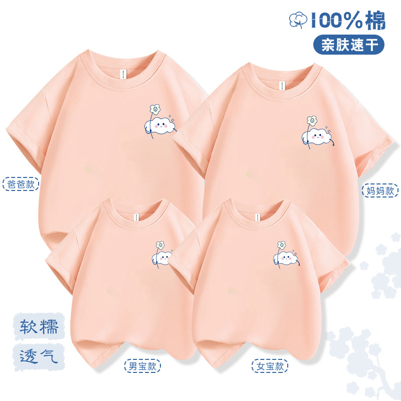 어린이 코튼 반팔 티셔츠 여름 새로운 도착 느슨한 미드 빅 키즈 가족 원피스 둥근 목 만화 인쇄 반소매 탑