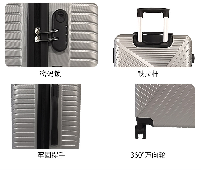 ABS 3피스 수하물 세트, 국경 간 대외 무역 가방, 고급 줄무늬 무음 다용도 수하물 트롤리 케이스스토어 가기