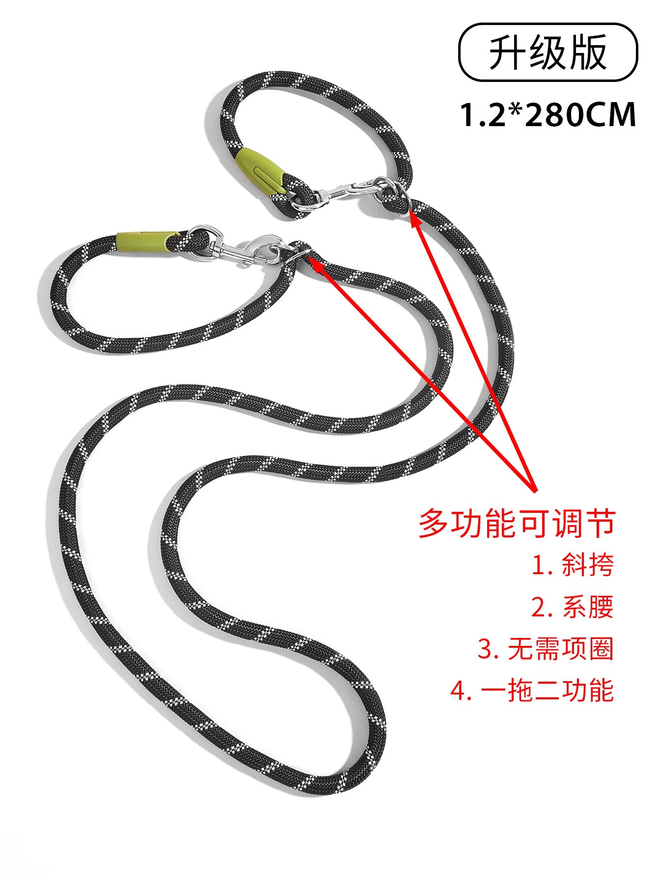 재고 무료 손 반사 크로스 바디 어깨 견인 로프 다기능 달리기 견인 로프 애완 동물 견인 벨트