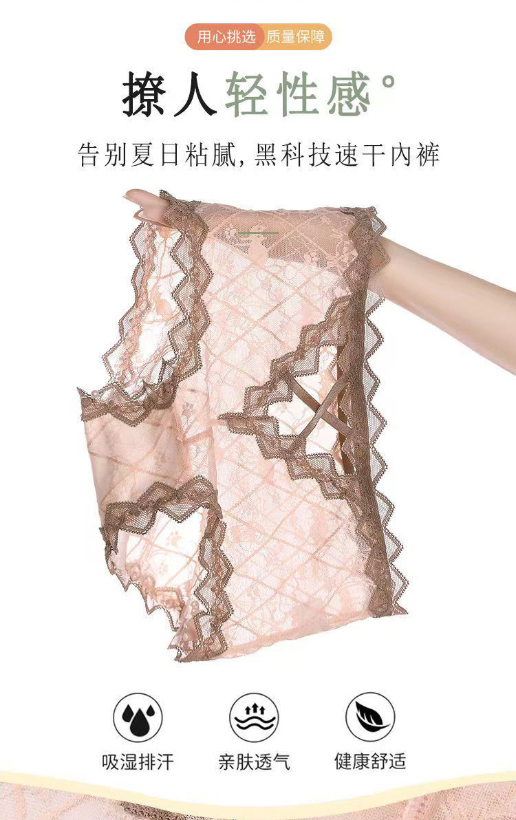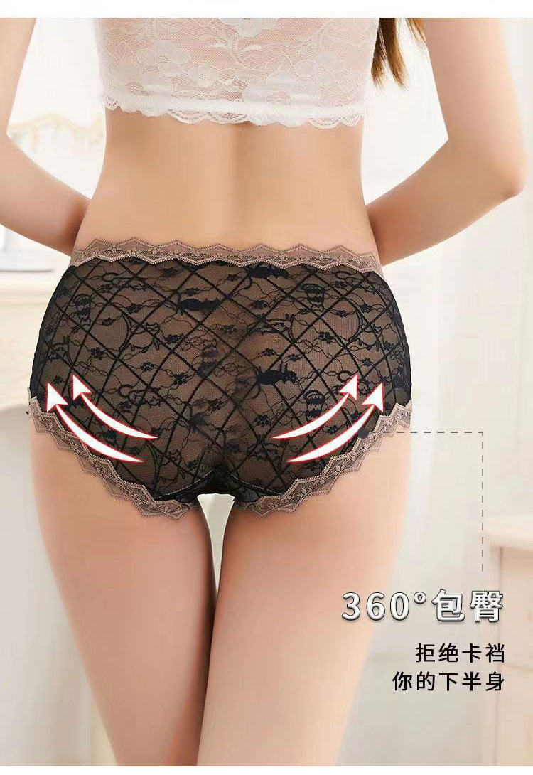 여자를위한 섹시한 속건성 레이스 팬티 중간 허리 중공 순수한 욕망 편안하고 통기성이 뛰어난 소녀 순수 코튼 대형 팬티스토어 가기