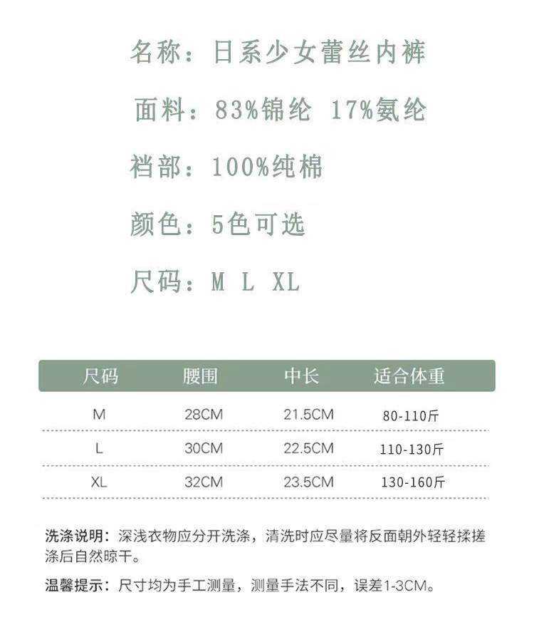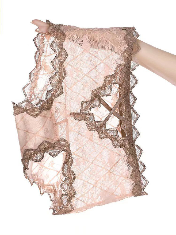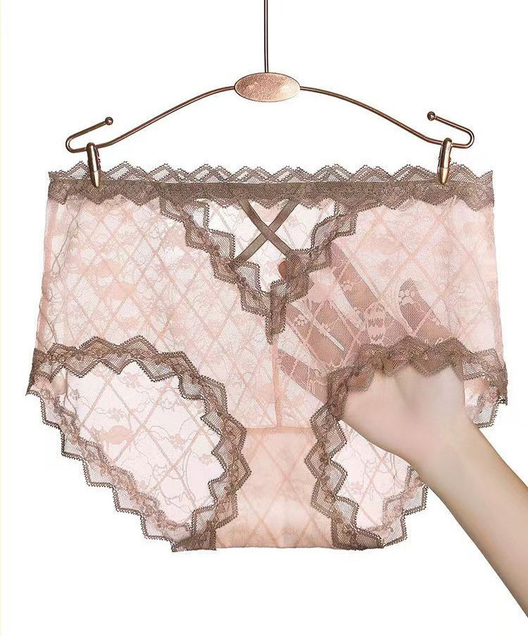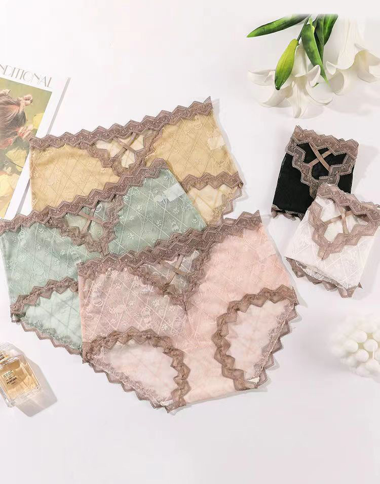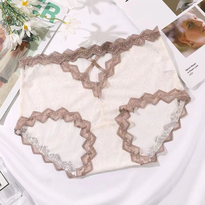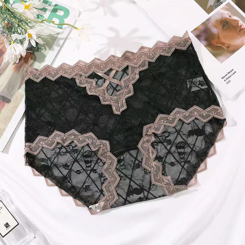 여자를위한 섹시한 속건성 레이스 팬티 중간 허리 중공 순수한 욕망 편안하고 통기성이 뛰어난 소녀 순수 코튼 대형 팬티