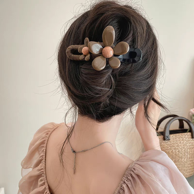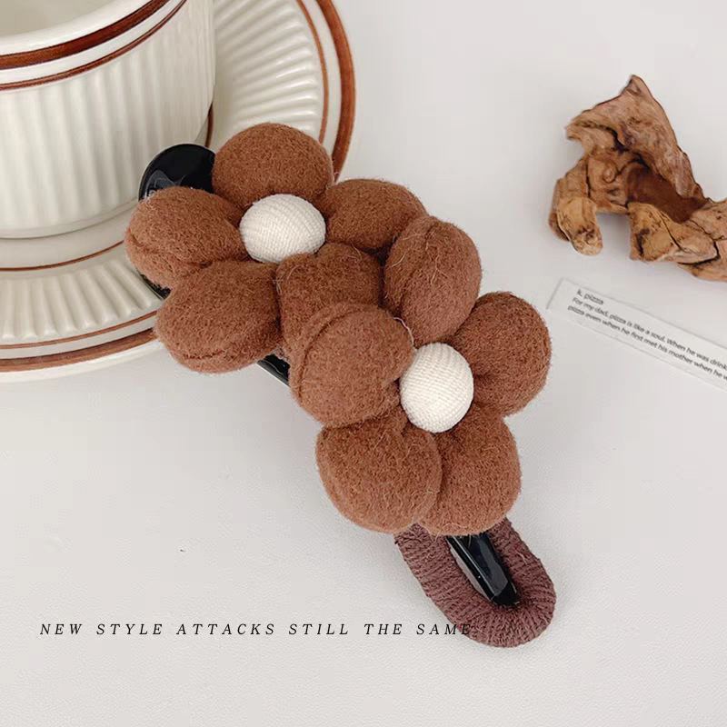 • 35#브라운 더블 플라워 덕빌 클립-12cm
