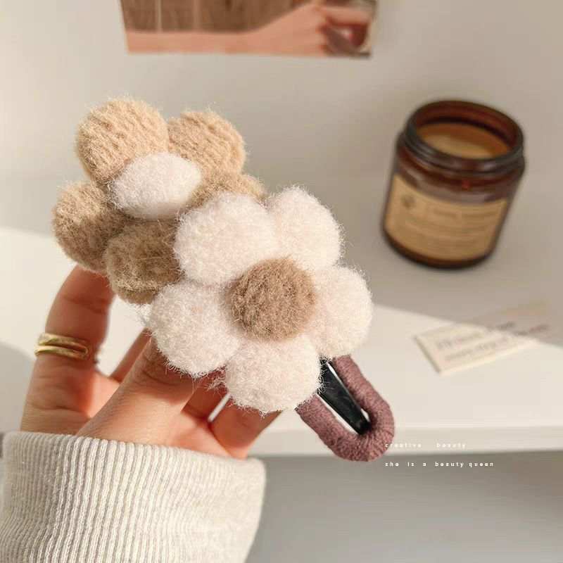 • 42#카키색 울 플라워 약 11cm 트위스트 클립
