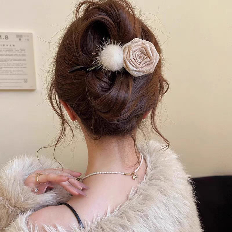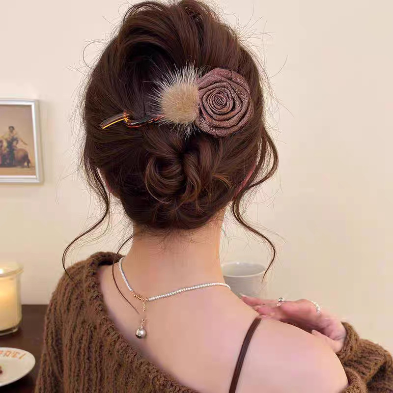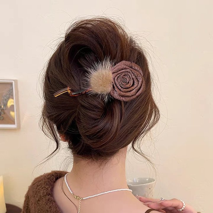 • 43#브라운 퍼 볼 드라이 로즈 약 12cm 트위스트 클립