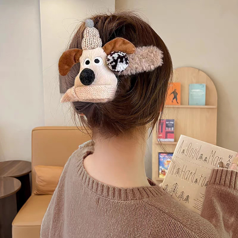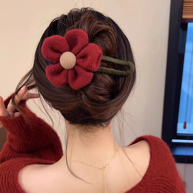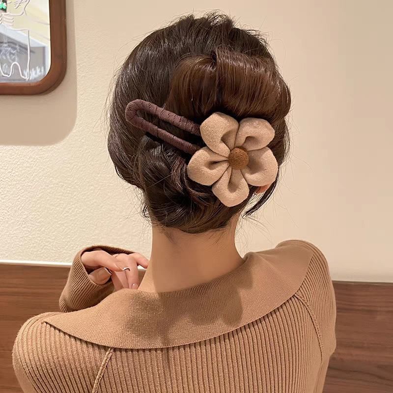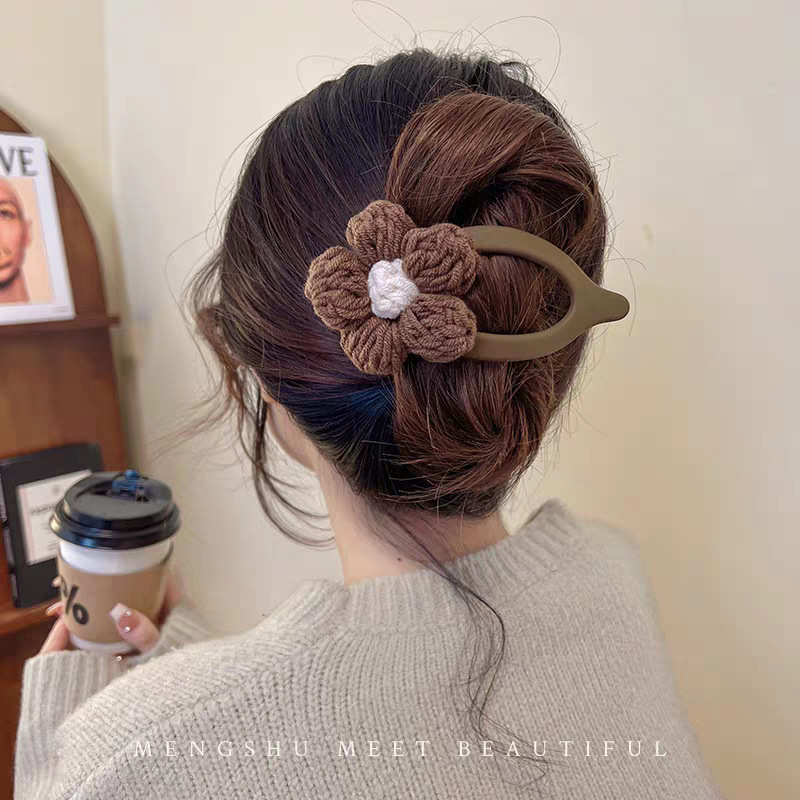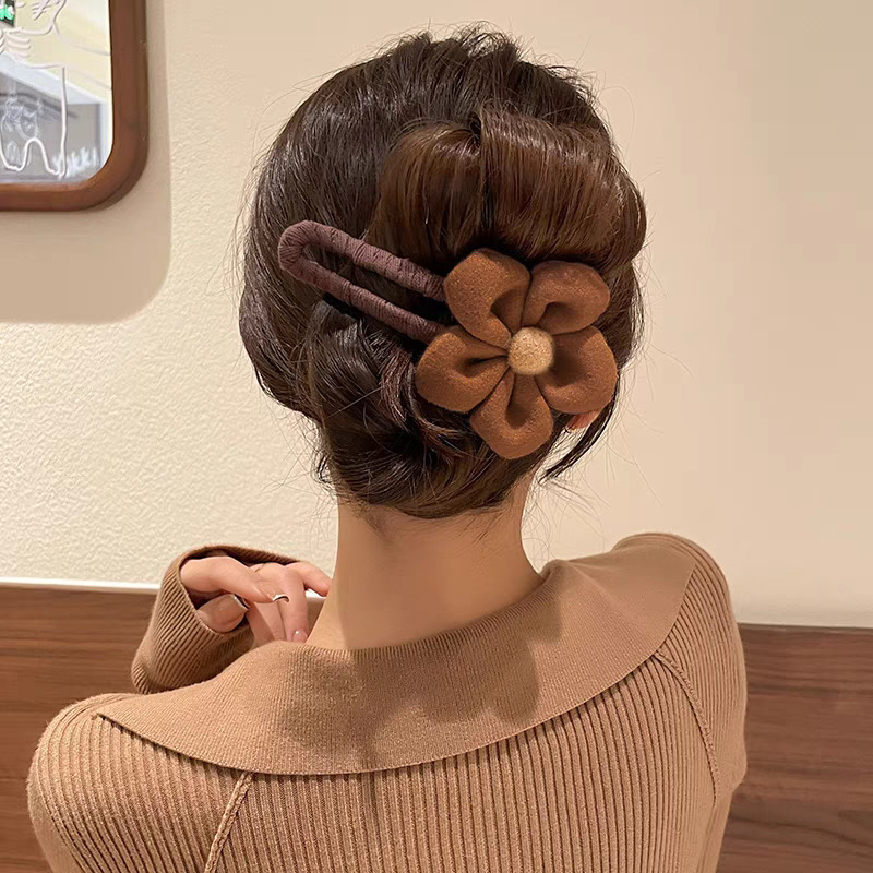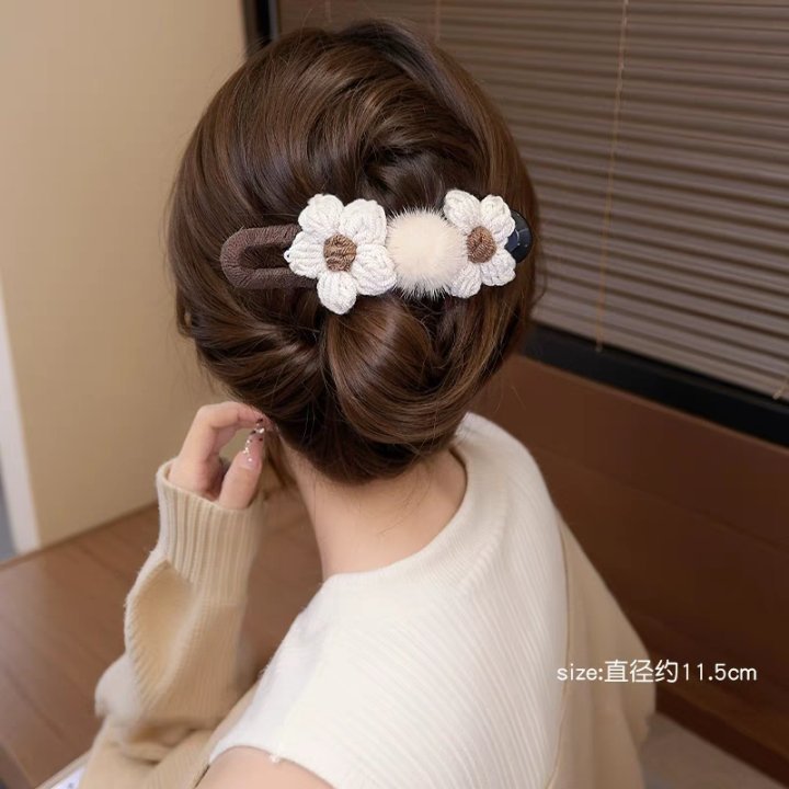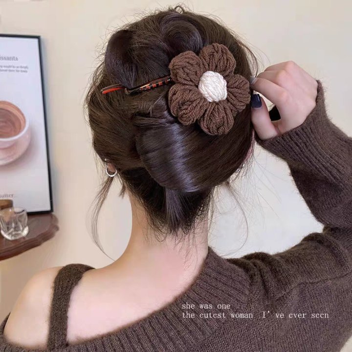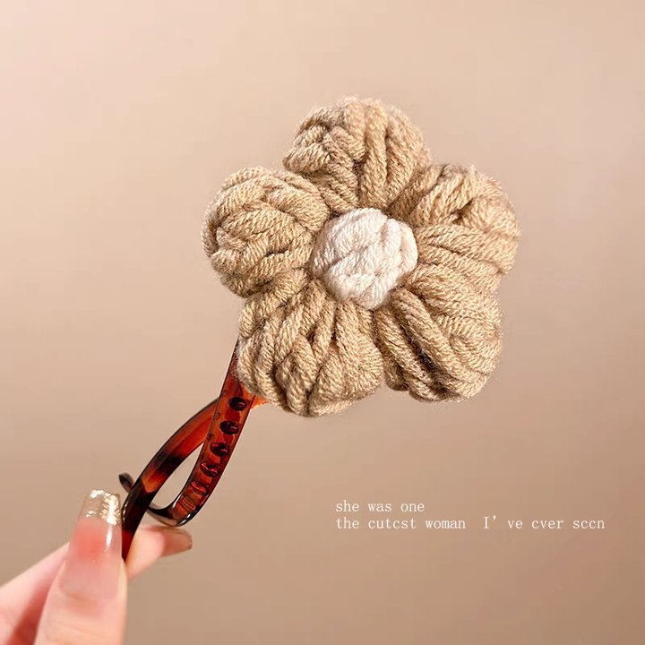 • 40#브라운 울 플라워 트위스트 클립 약 11cm