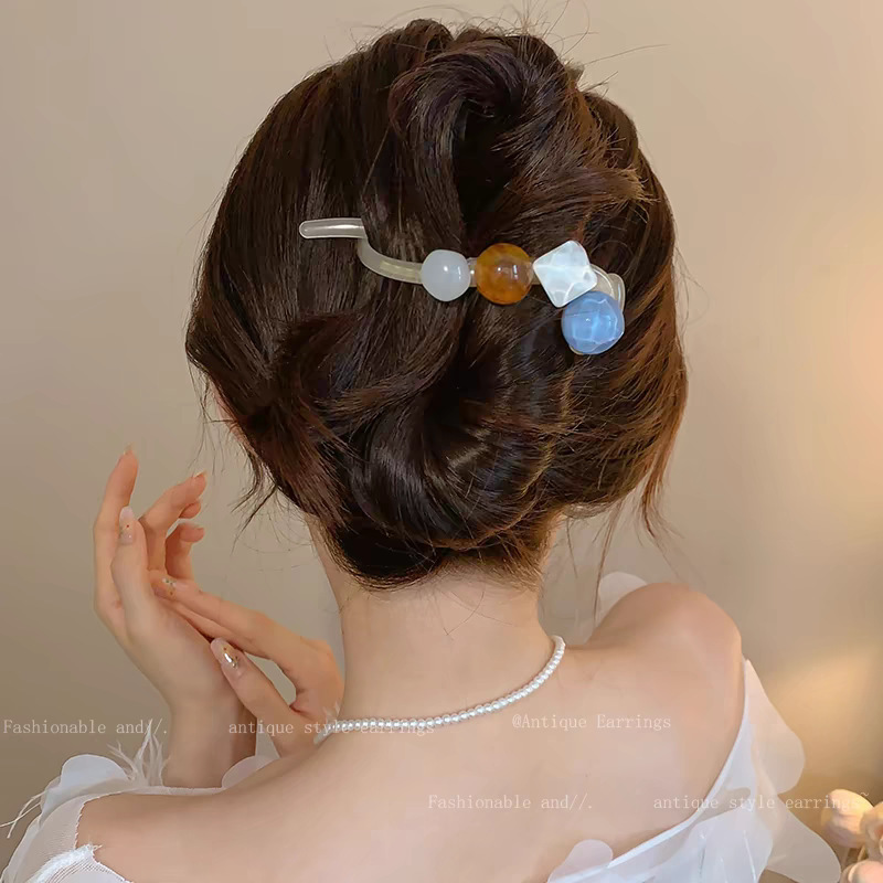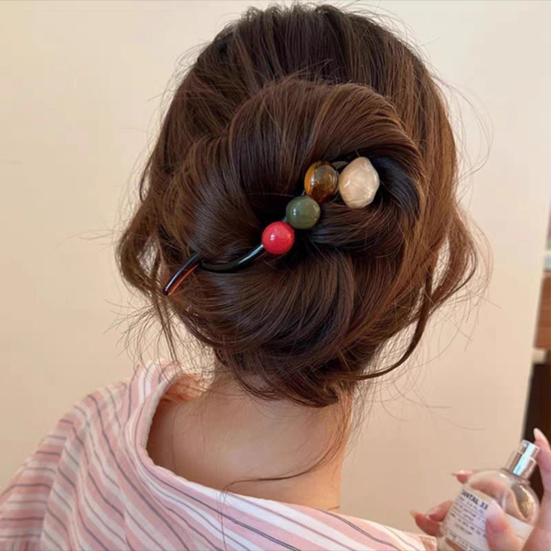 한 캐릭터 클립 레트로 라운드 비드 헤어핀 여성의 새로운 스타일 우아한 올 매치 트위스트 클립 고급 헤드 헤어 트릭 헤드웨어