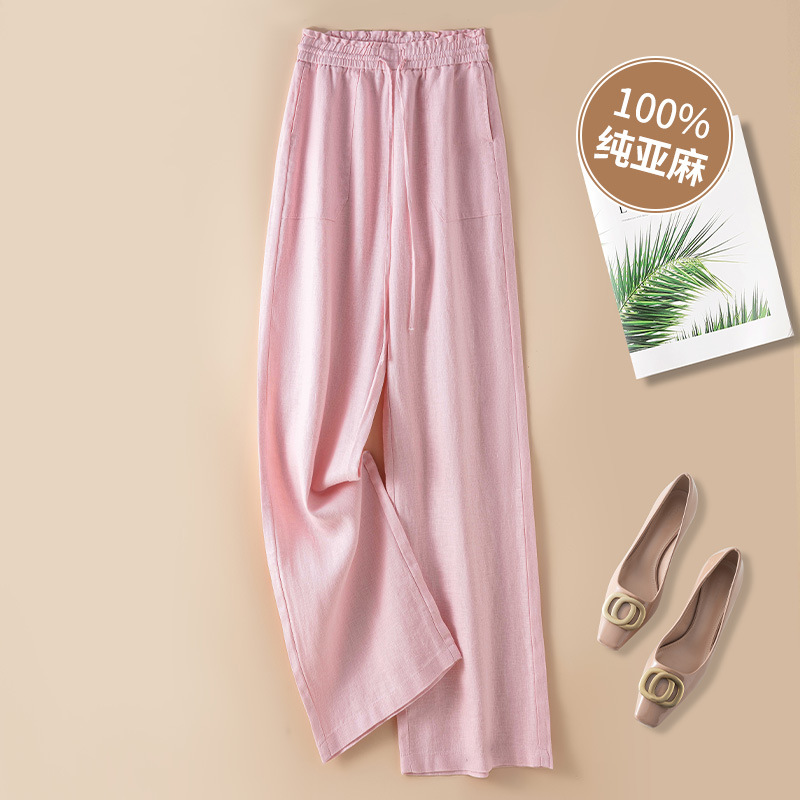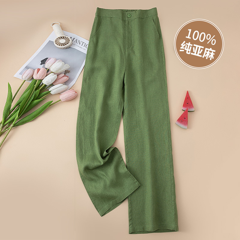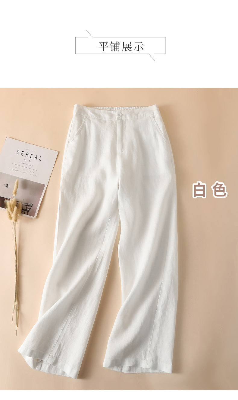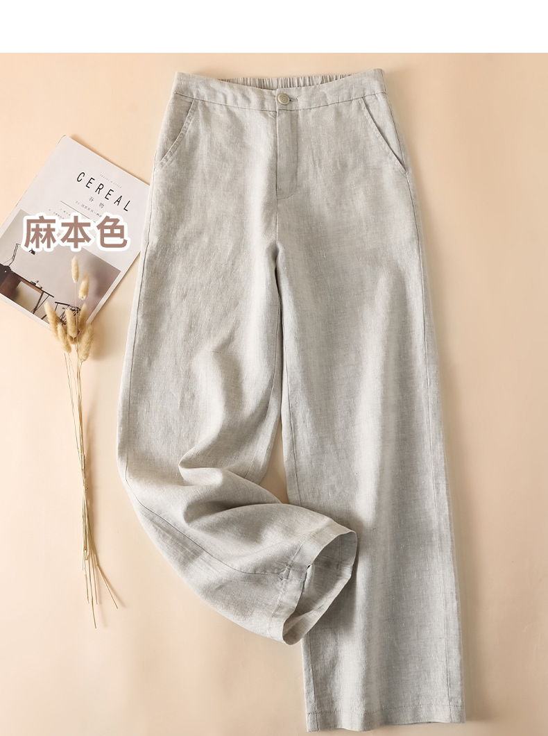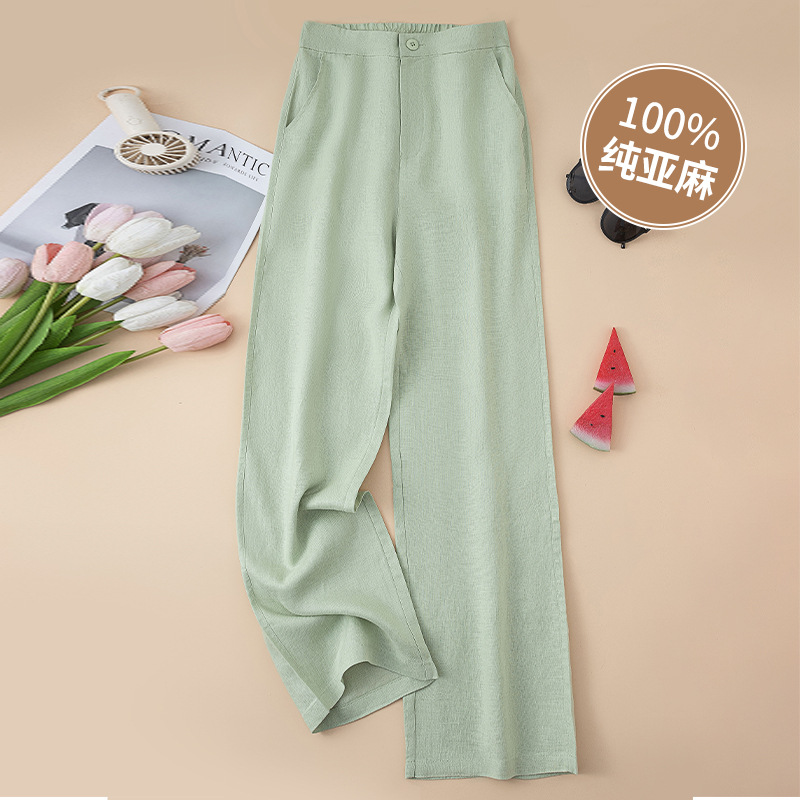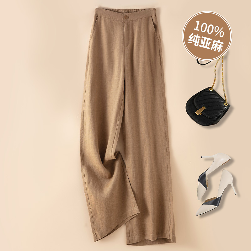 퓨어 린넨 와이드 팬츠 2025 신상 얇은 린넨 드레이프 하이웨이스트 9부 슬림 캐주얼 스트레이트 여성 바지스토어 가기