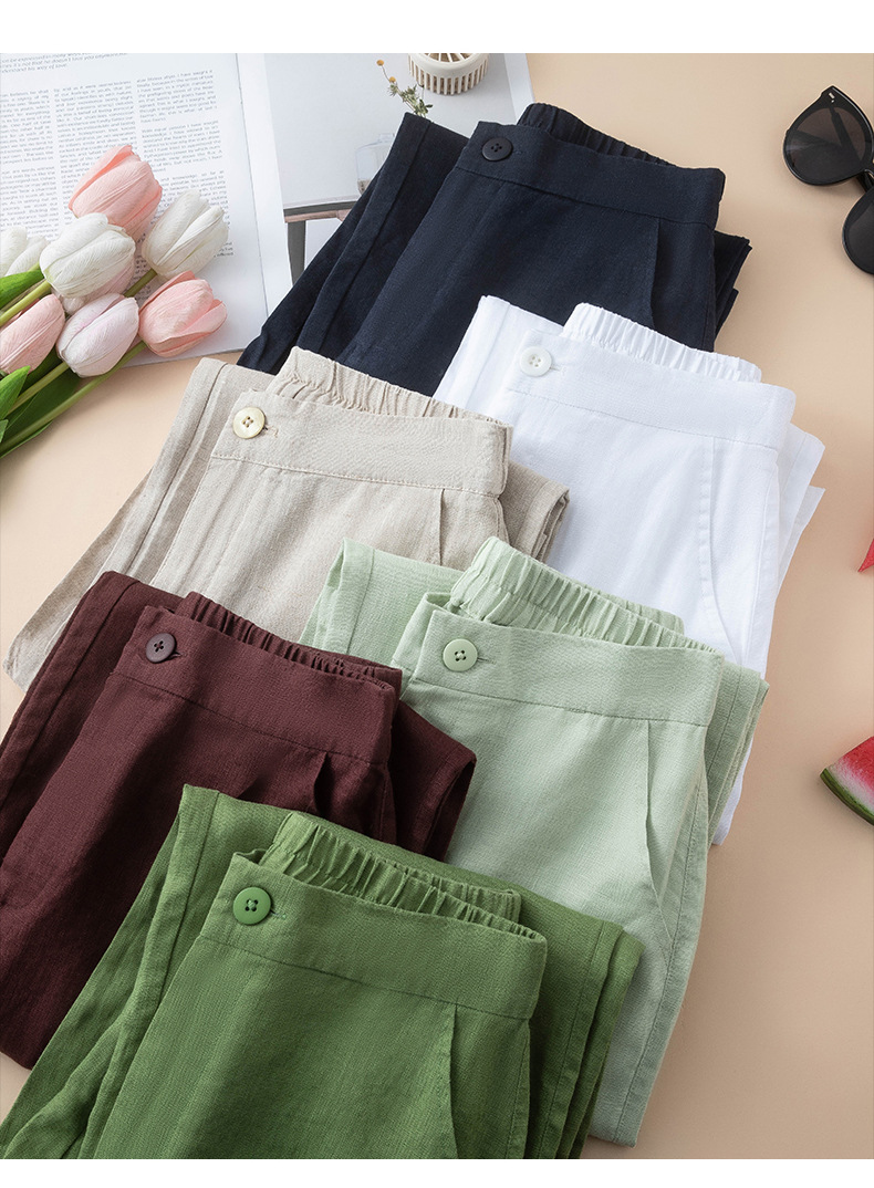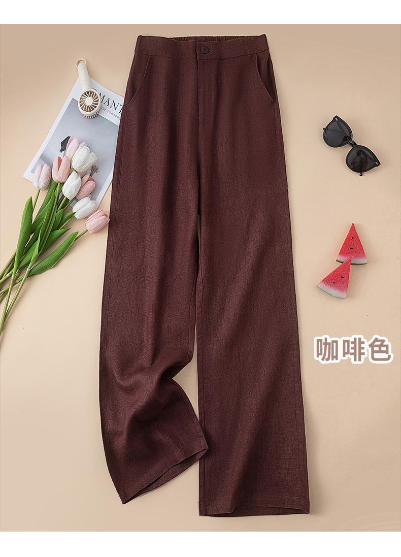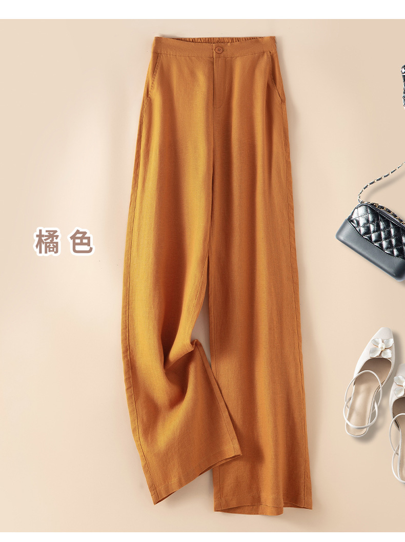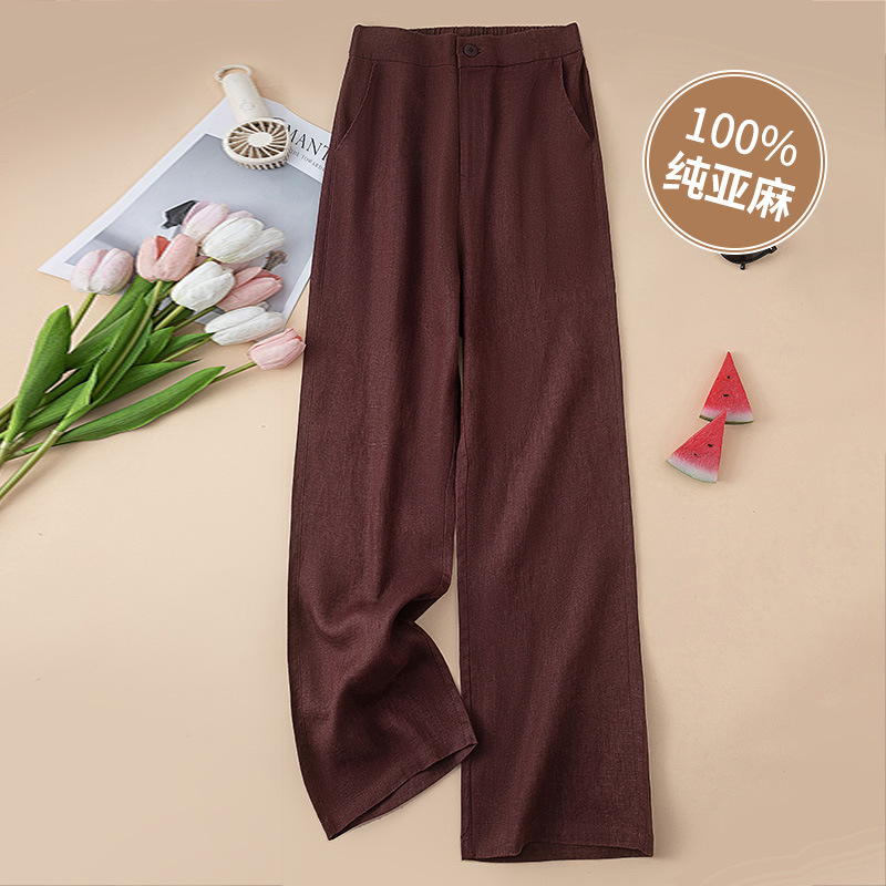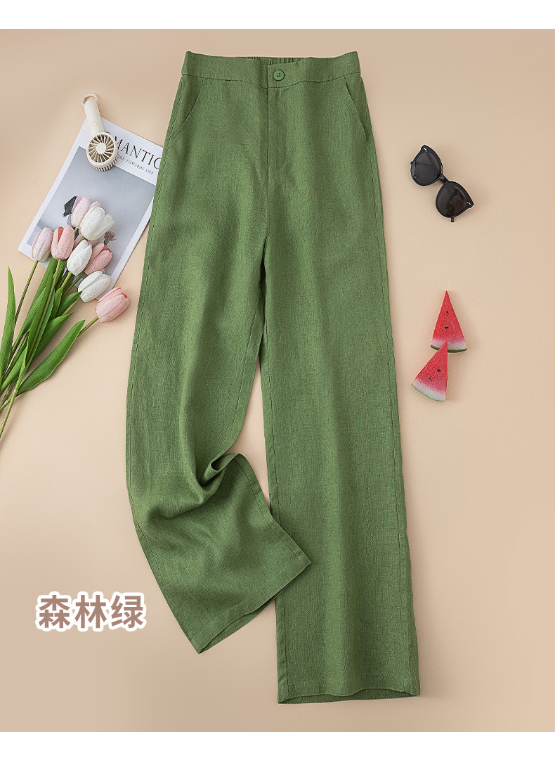 퓨어 린넨 와이드 팬츠 2025 신상 얇은 린넨 드레이프 하이웨이스트 9부 슬림 캐주얼 스트레이트 여성 바지스토어 가기
