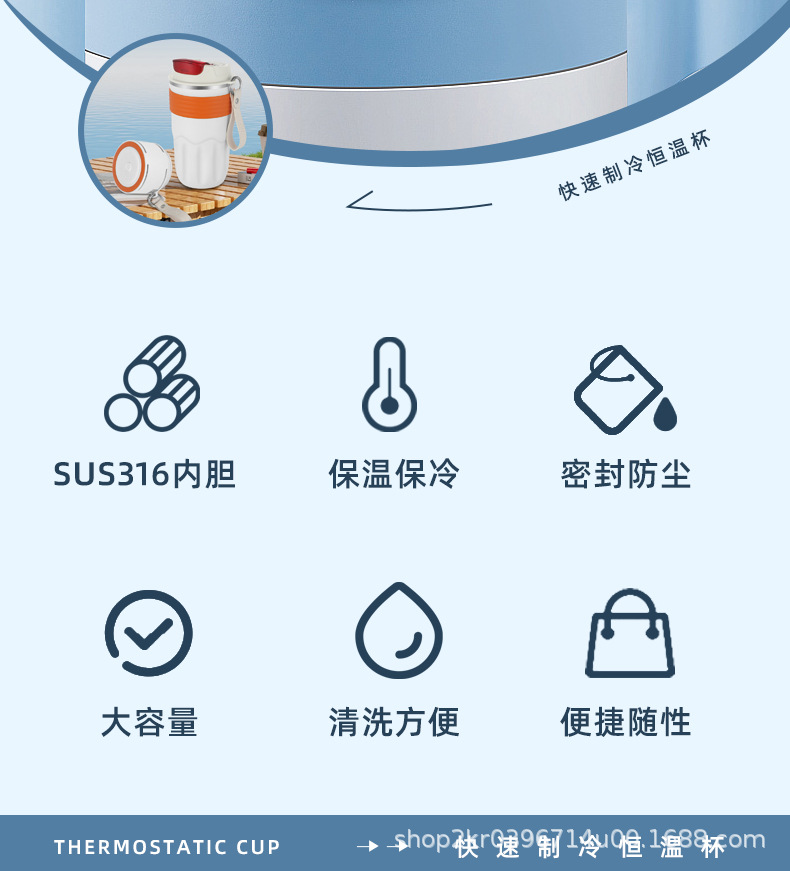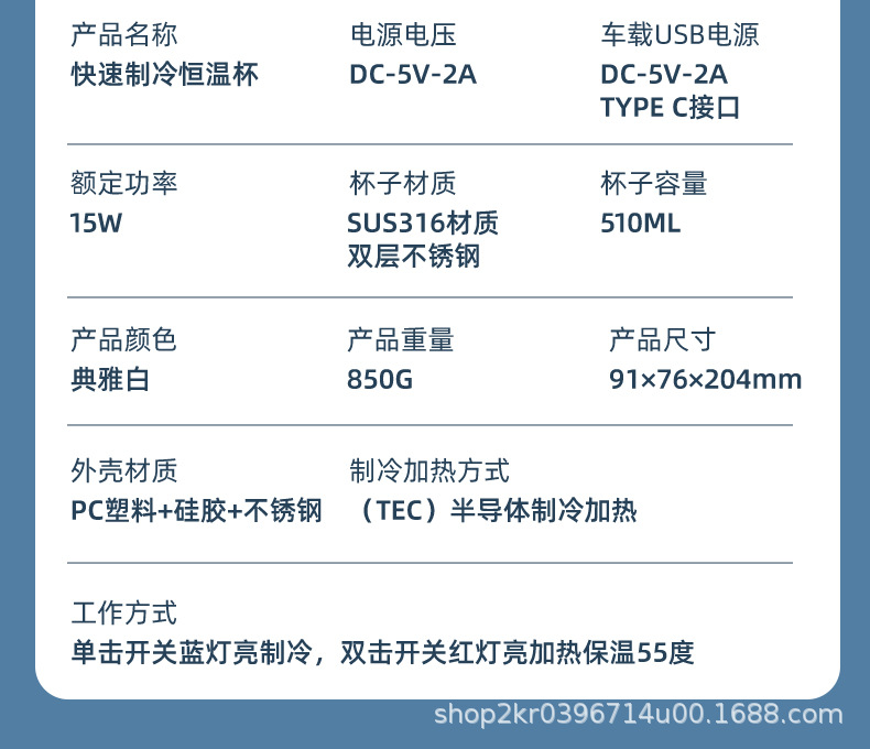 자동차 급속 냉각 컵 316 라이너 휴대용 야외 사무실 급속 냉각 컵 따뜻하고 차가운 USB 냉온 얼음 컵