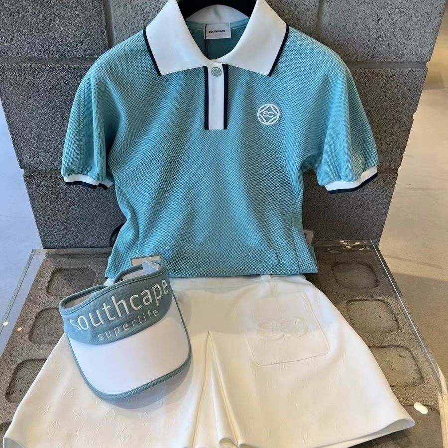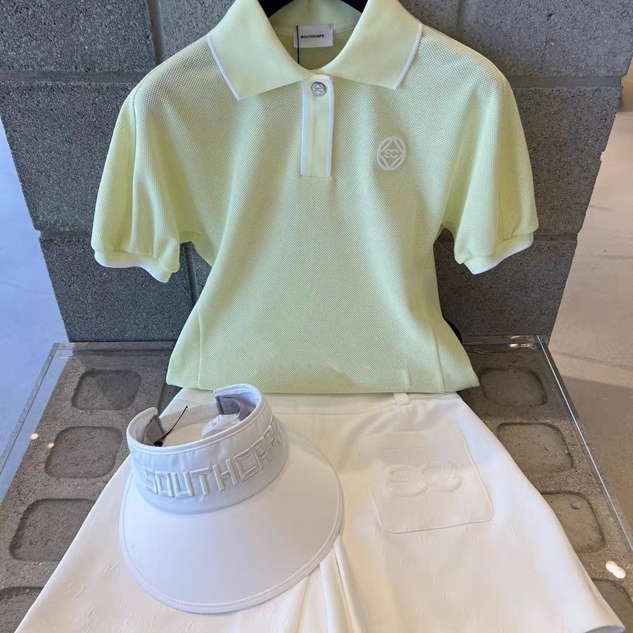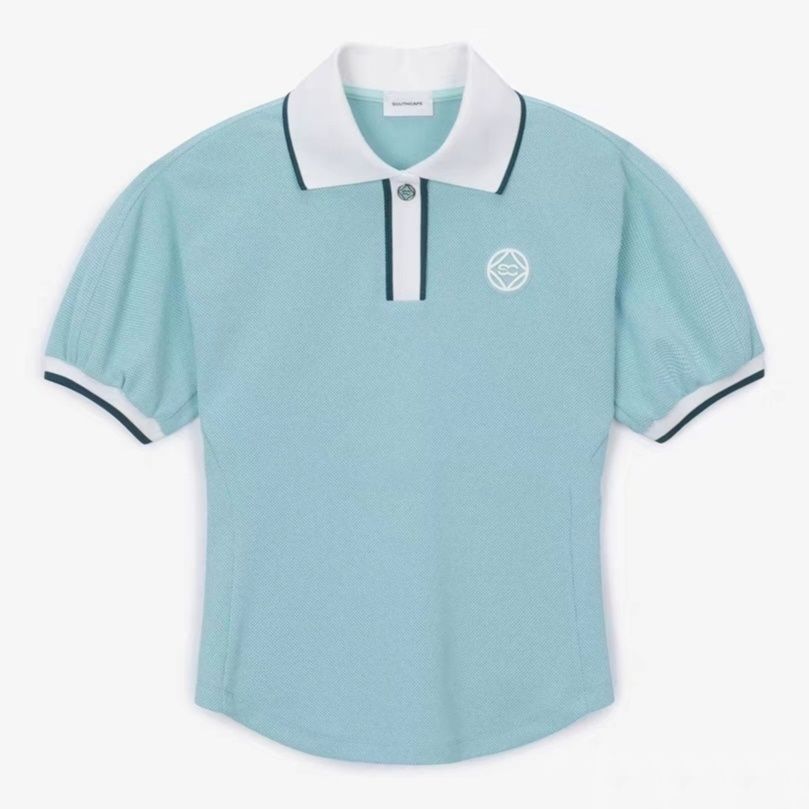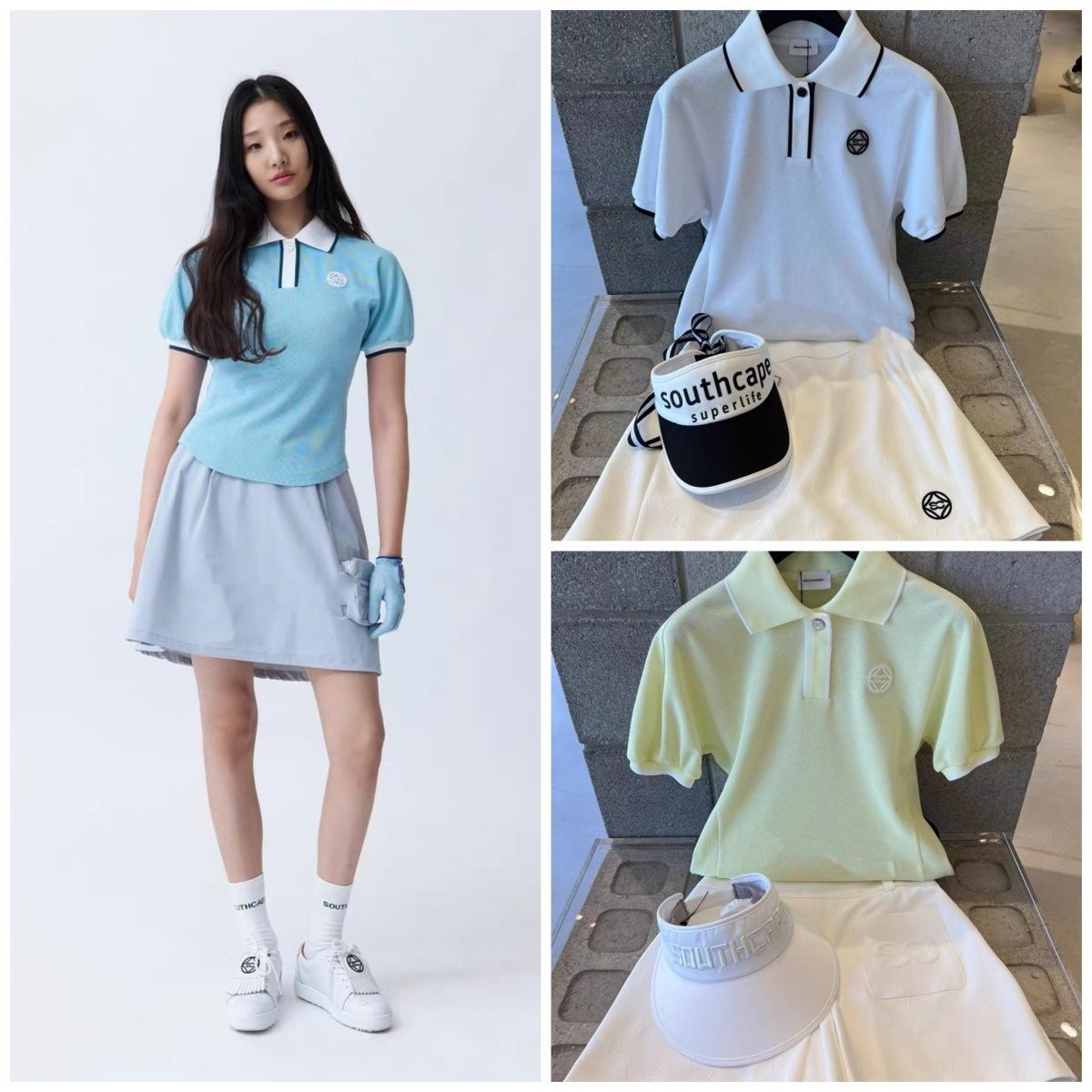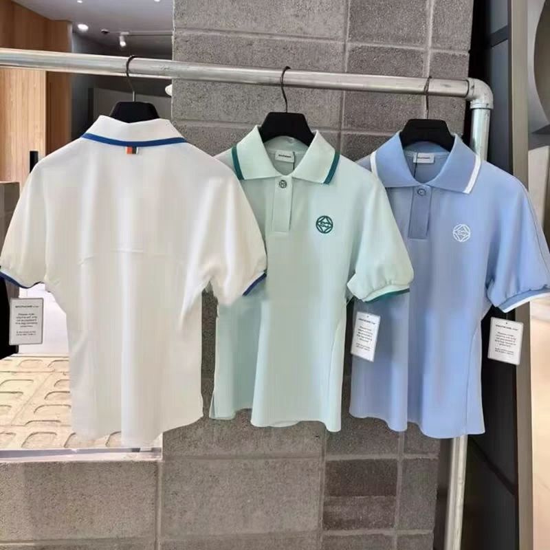 한국 골프웨어 여성용 25 라펠 컬러 매칭 버블 반소매 티셔츠스토어 가기
