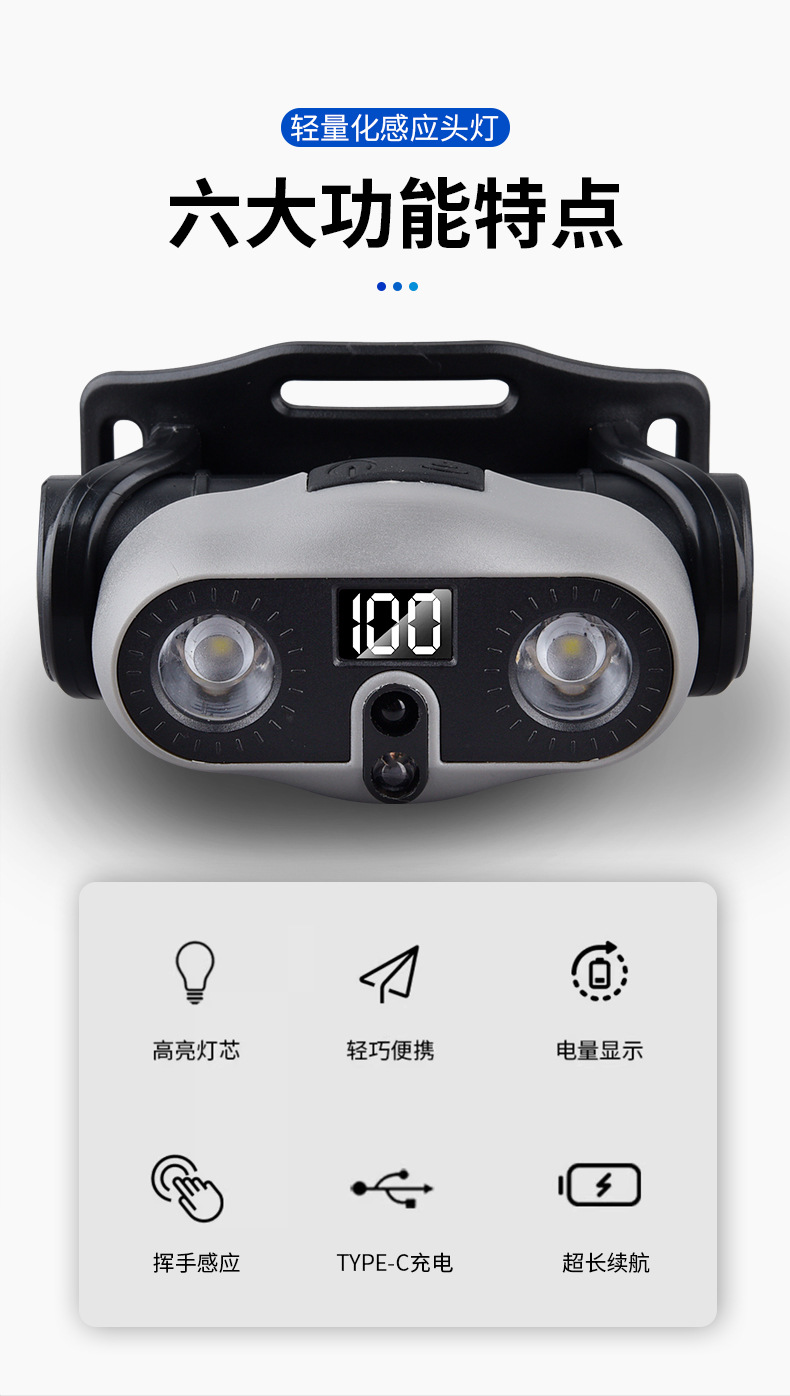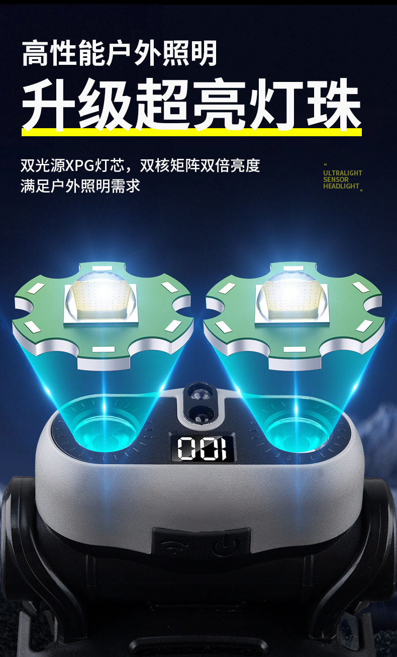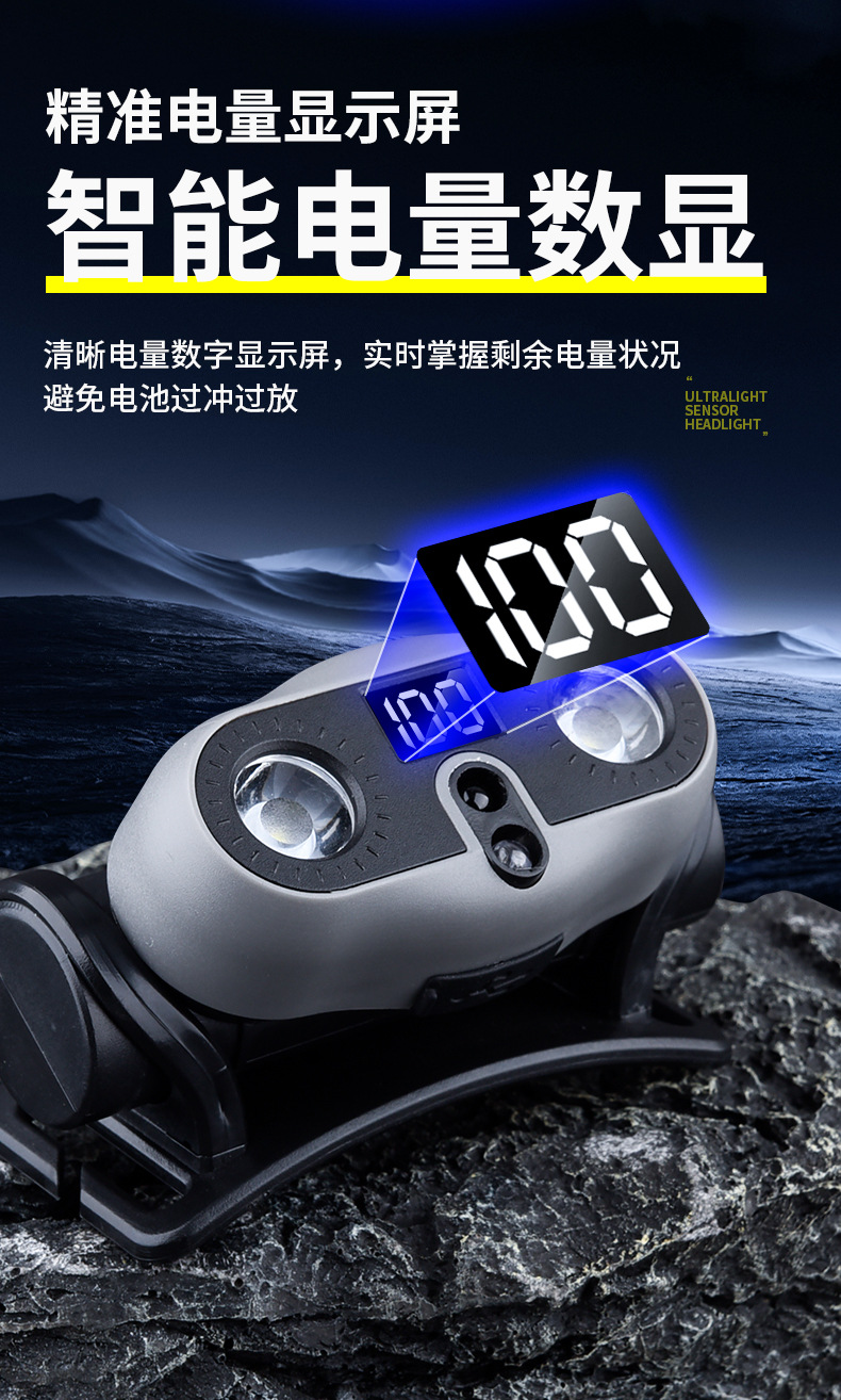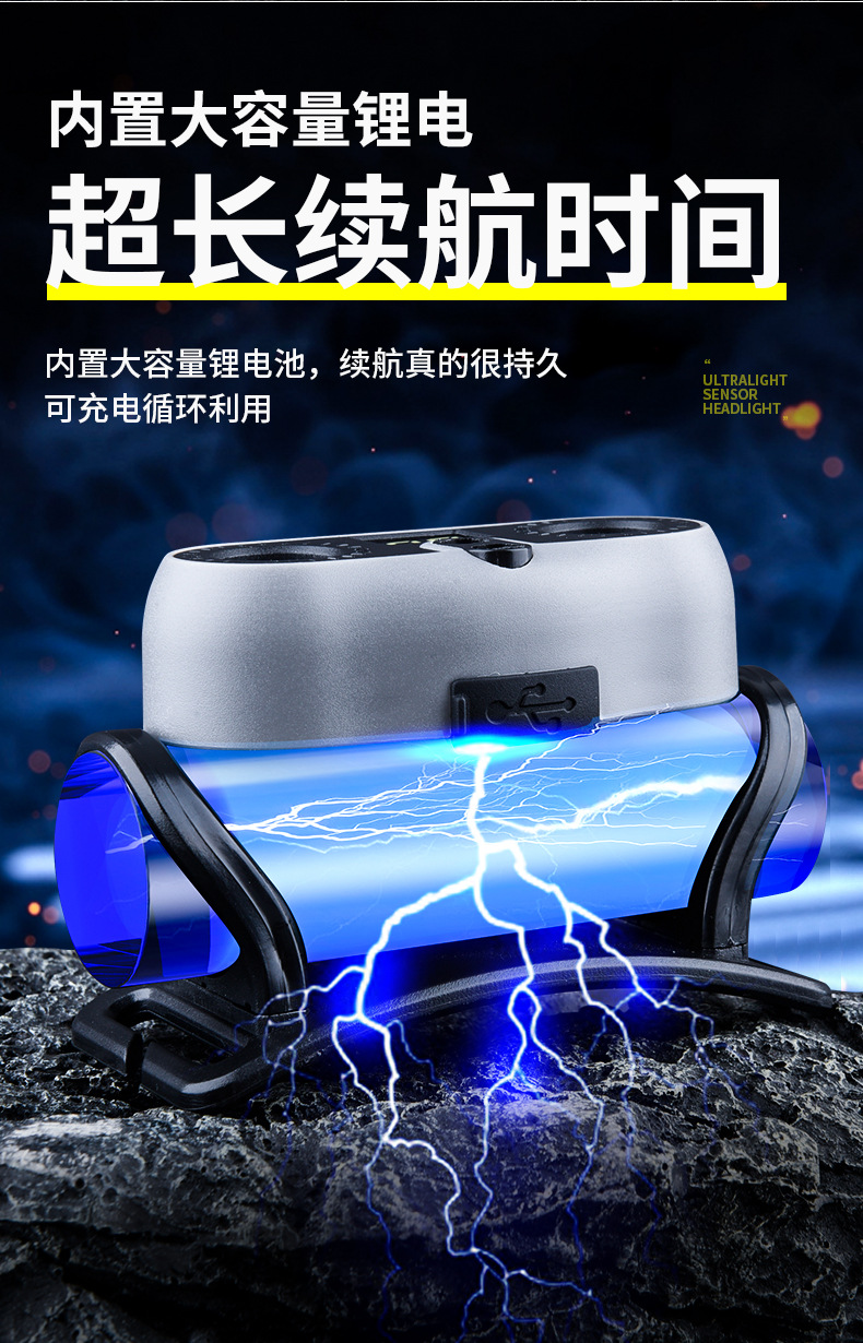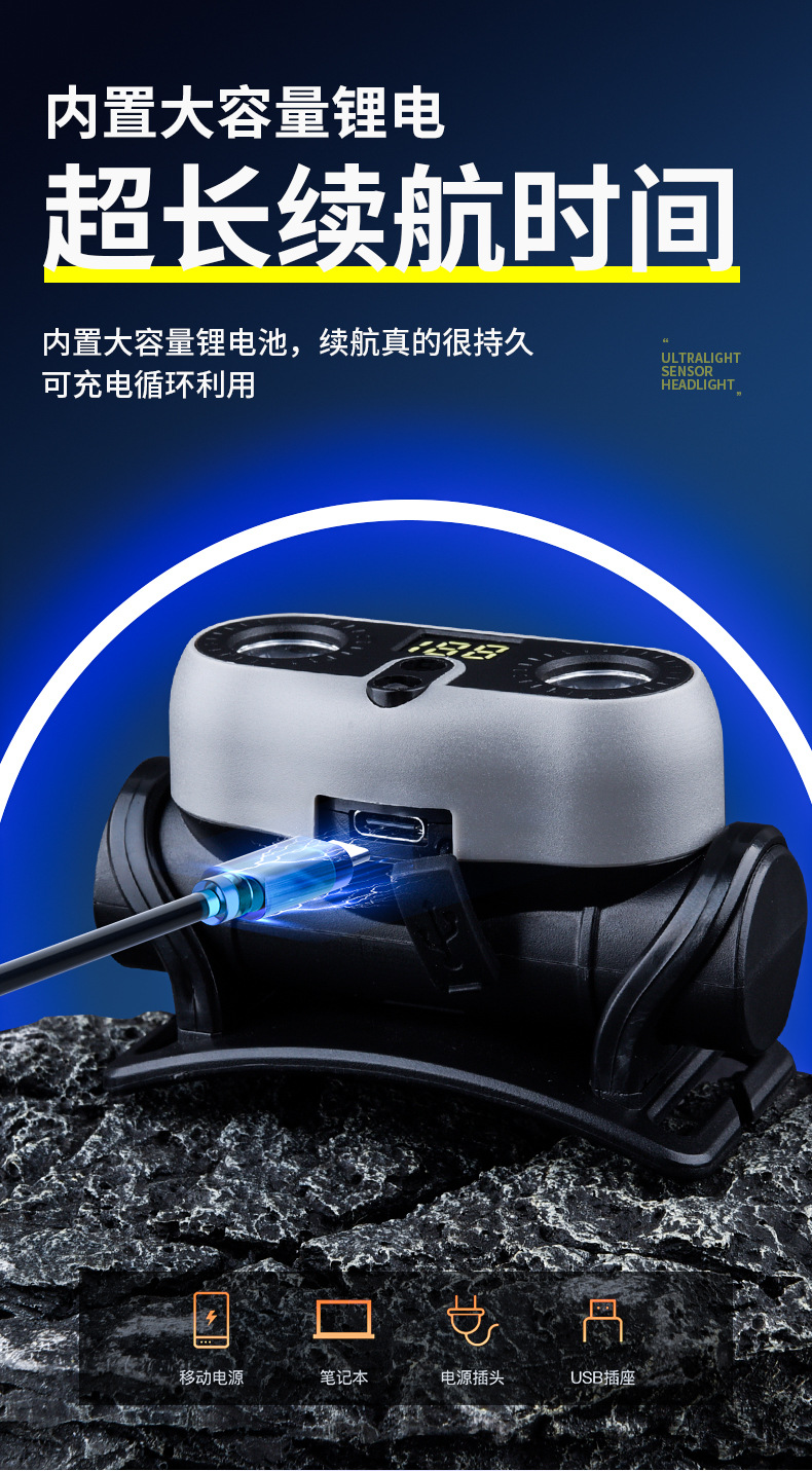 2025 새로운 야외 헤드 라이트 긴 배터리 수명 낚시 초경량 유도 LED 충전식 휴대용 충전식 헤드 라이트