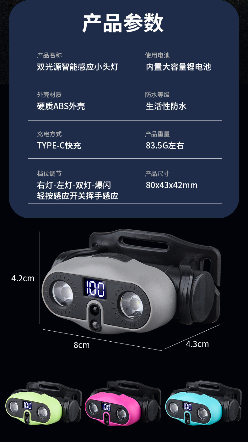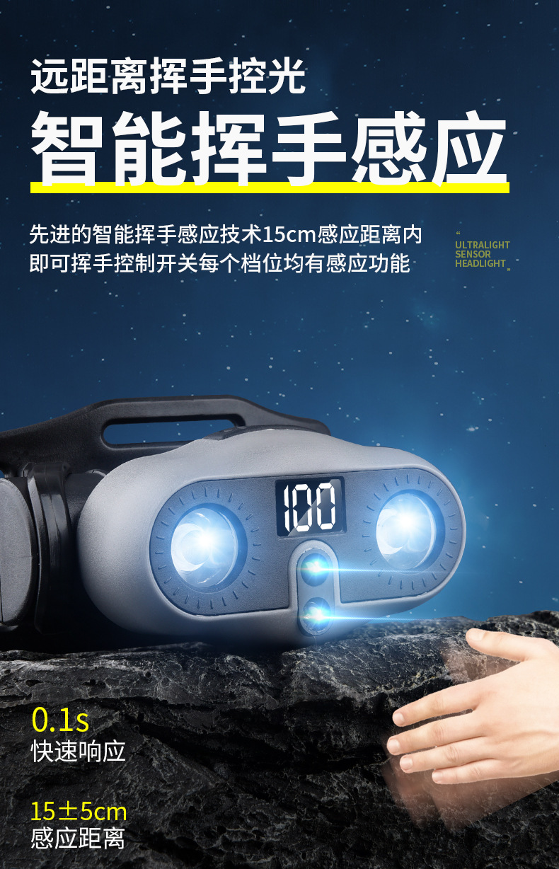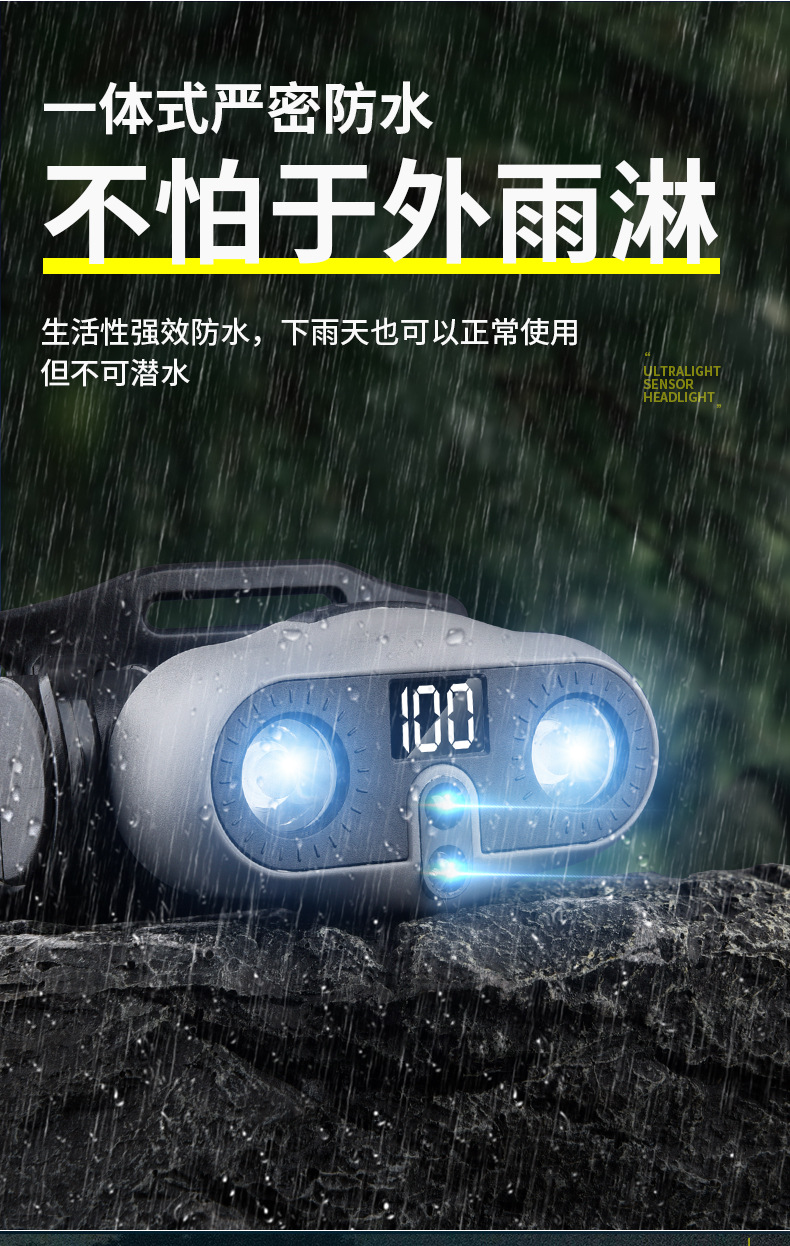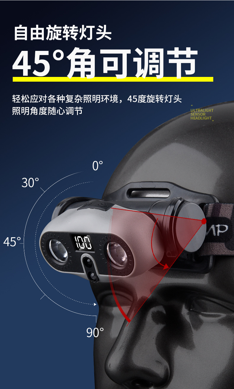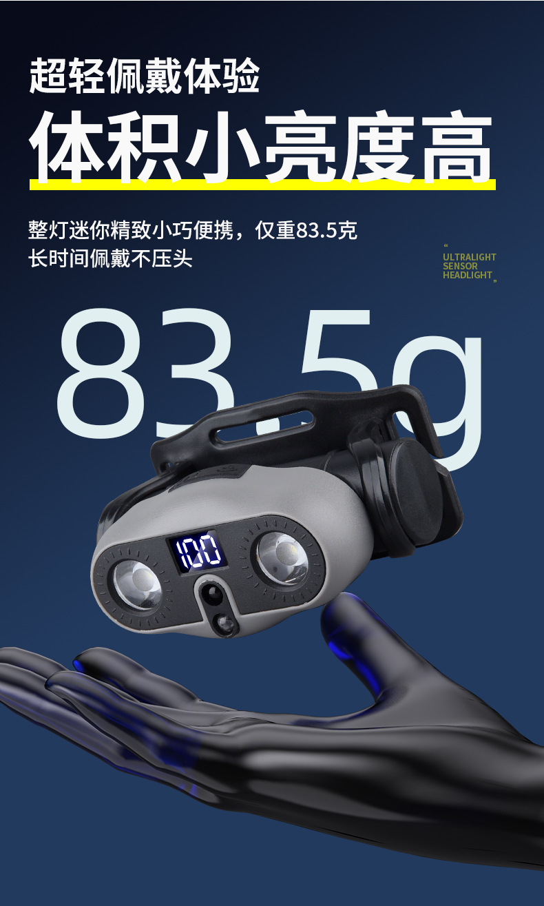 2025 새로운 야외 헤드 라이트 긴 배터리 수명 낚시 초경량 유도 LED 충전식 휴대용 충전식 헤드 라이트
