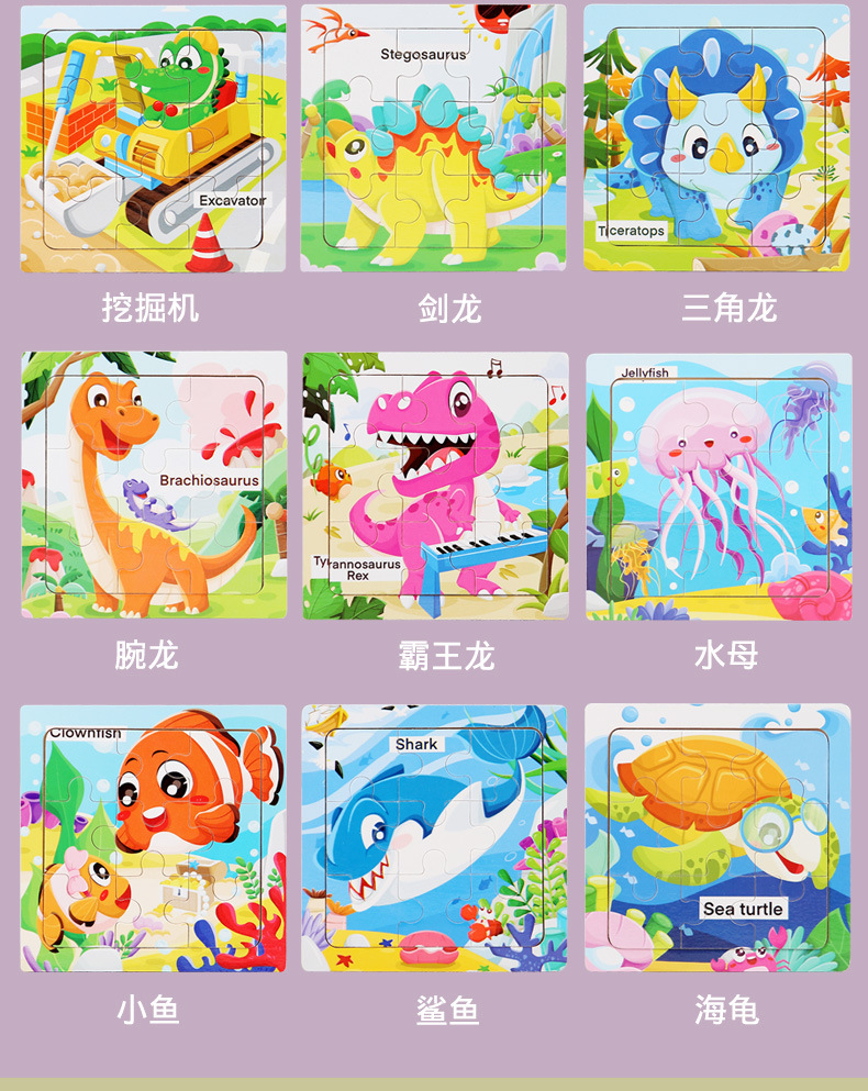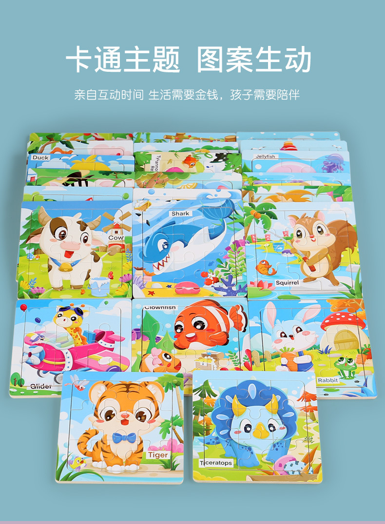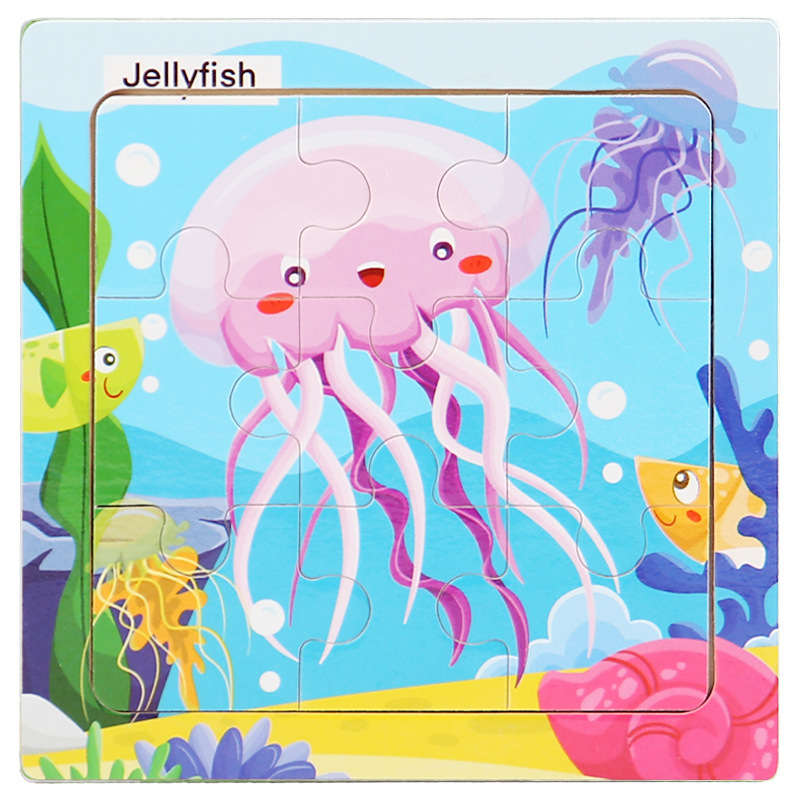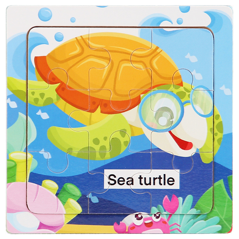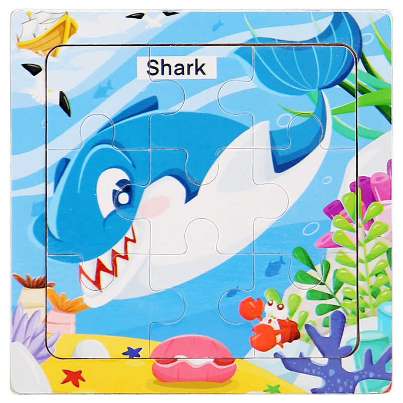 어린이 3-6 나무 퍼즐 해양 동물 인식 만화 평면 퍼즐 조기 교육 교육 퍼즐 퍼즐 국경 간 공급스토어 가기