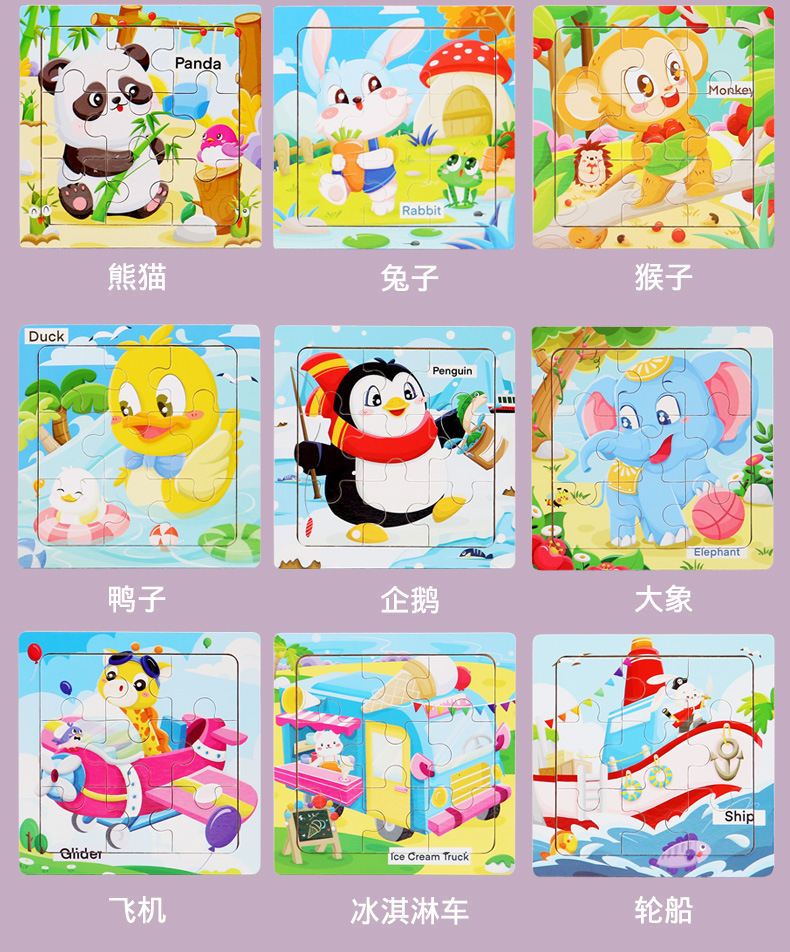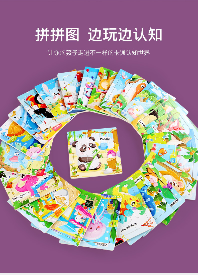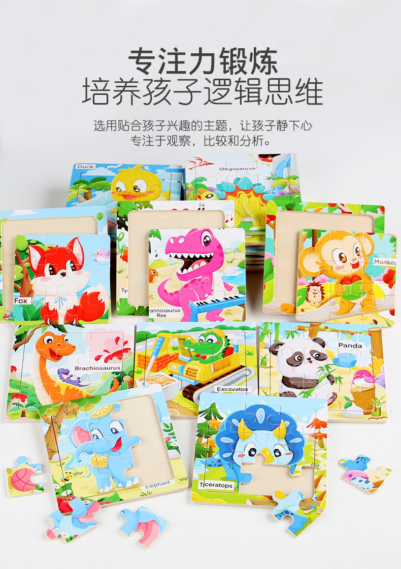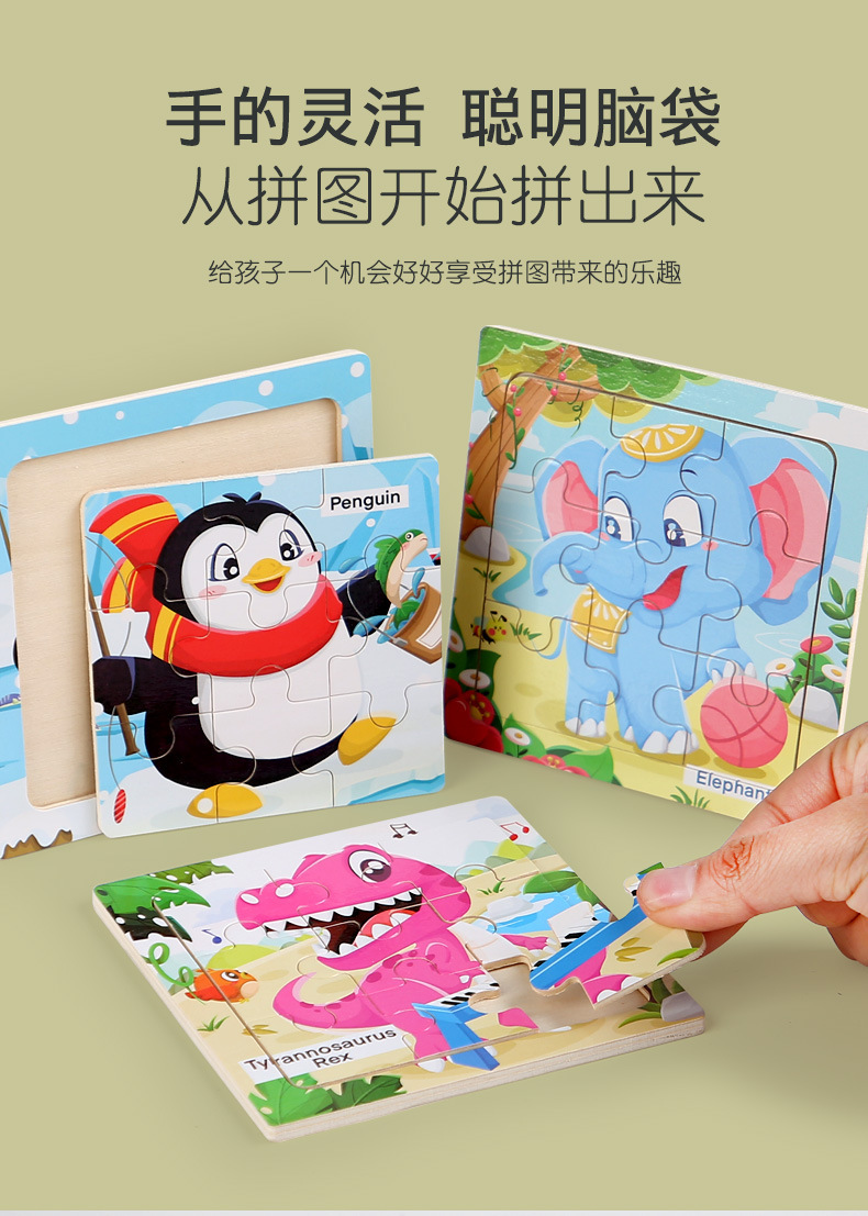 어린이 3-6 나무 퍼즐 해양 동물 인식 만화 평면 퍼즐 조기 교육 교육 퍼즐 퍼즐 국경 간 공급스토어 가기