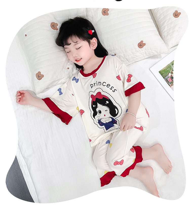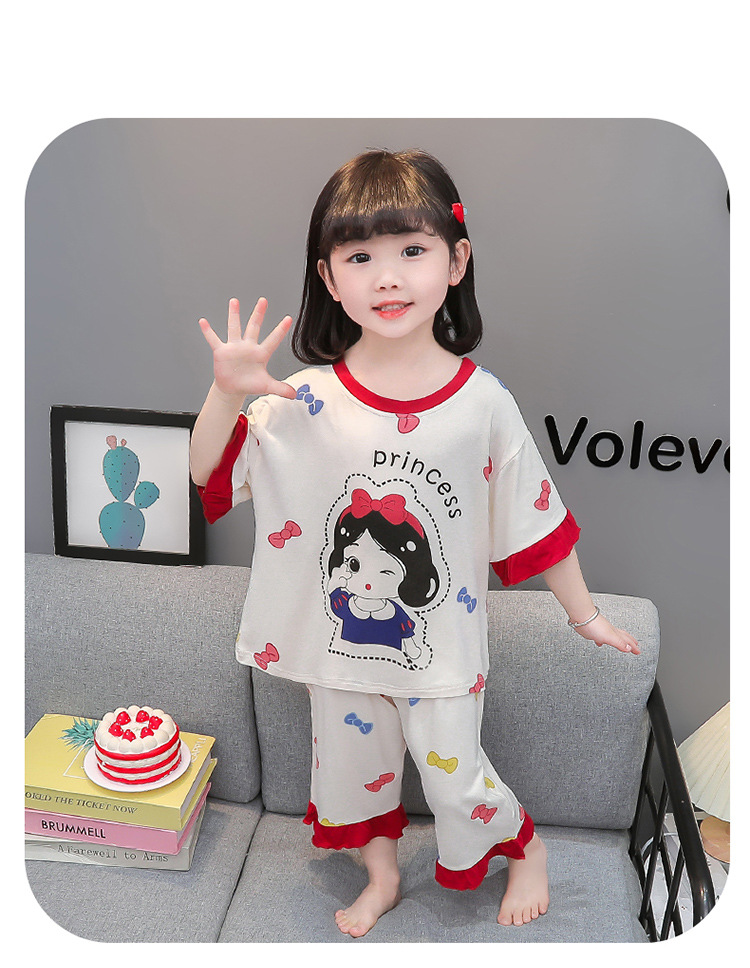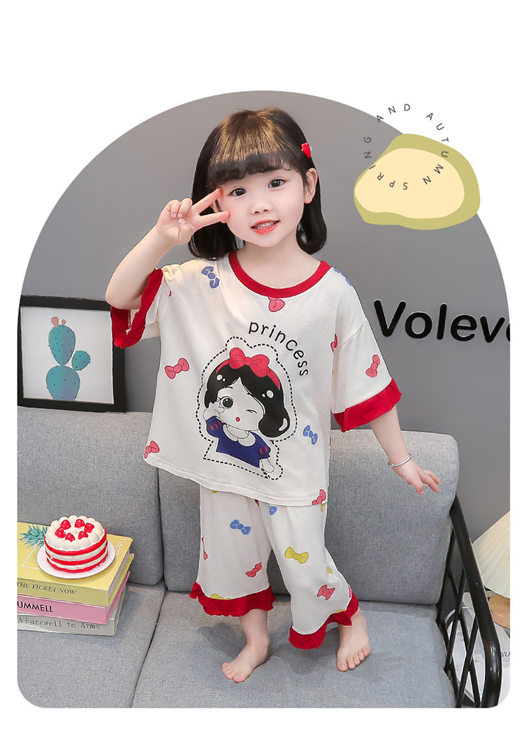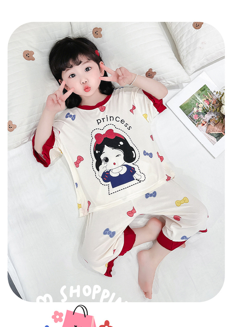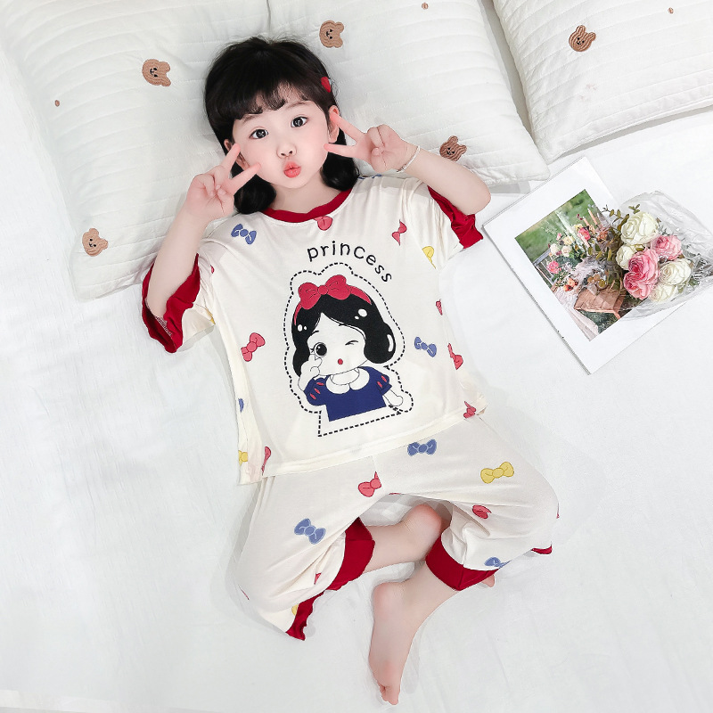 아동 잠옷 봄, 가을, 여름 모달 여아용 얇은 긴팔 반팔 여아용 아기 에어컨 가정복 세트