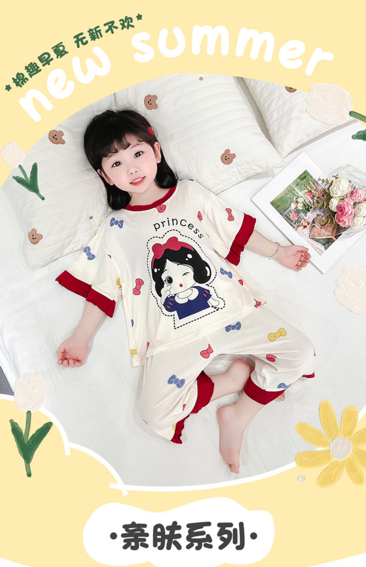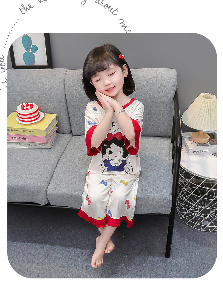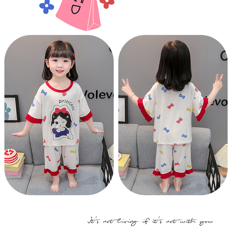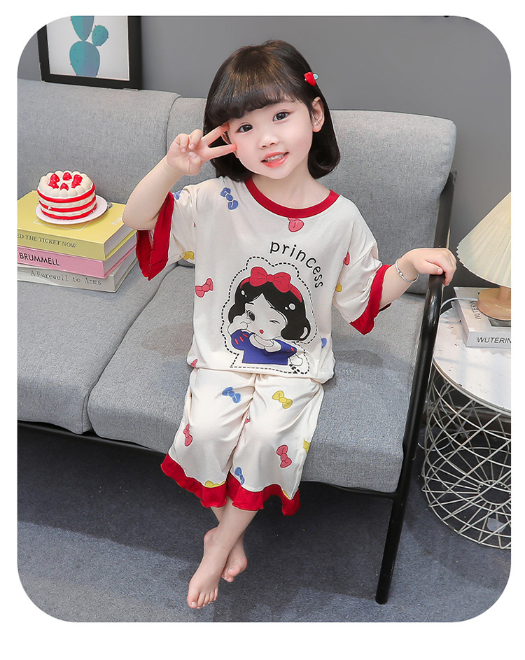아동 잠옷 봄, 가을, 여름 모달 여아용 얇은 긴팔 반팔 여아용 아기 에어컨 가정복 세트