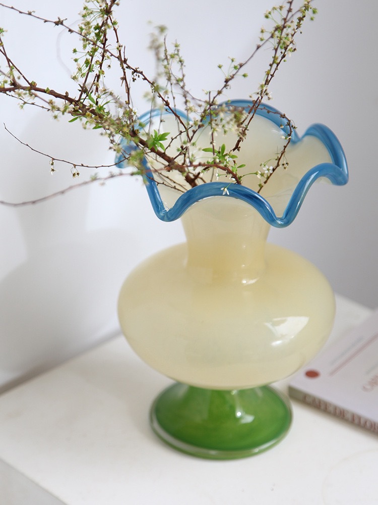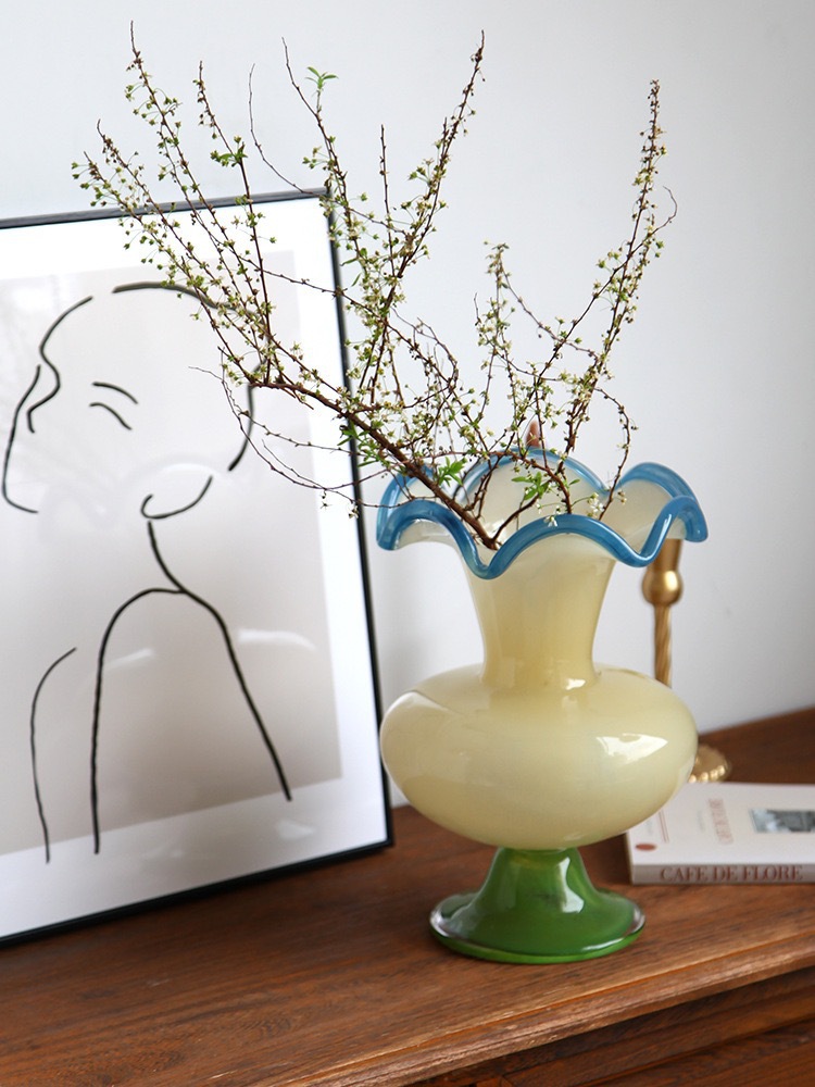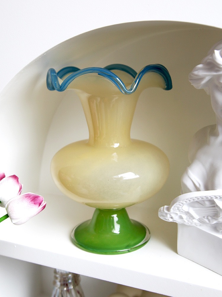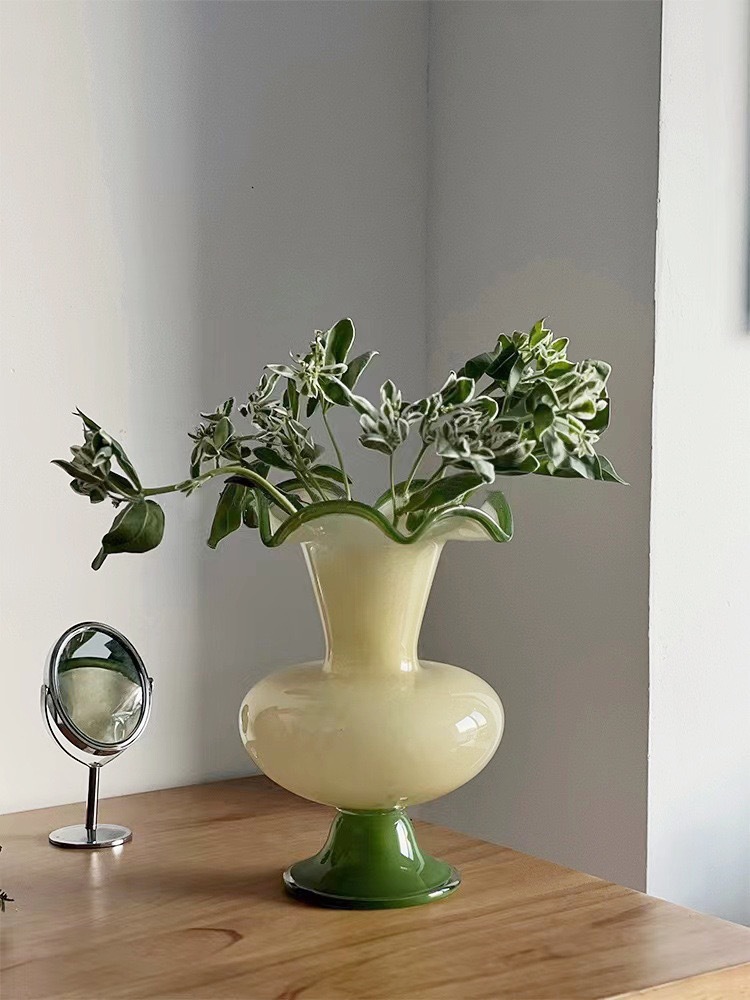 중세 와비사비 스타일 녹색 펜턴 유리 꽃병 홈 유리 컬러 매칭 스타일 램프 꽃병 꽃꽂이 장식 장식품스토어 가기