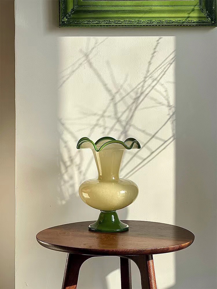 중세 와비사비 스타일 녹색 펜턴 유리 꽃병 홈 유리 컬러 매칭 스타일 램프 꽃병 꽃꽂이 장식 장식품