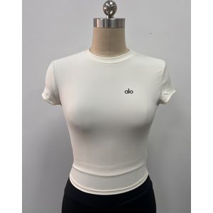 Alo 요가 의류 여성 필라테스 피트니스 훈련 반팔 배꼽 타이트 티셔츠 여름을위한 빠른 건조 러닝 스포츠 탑스토어 가기