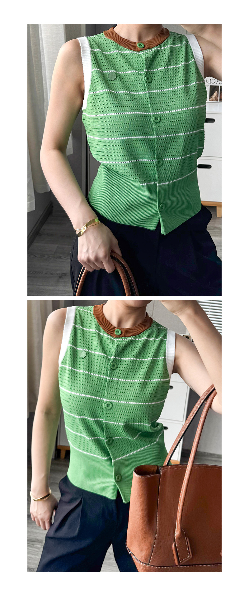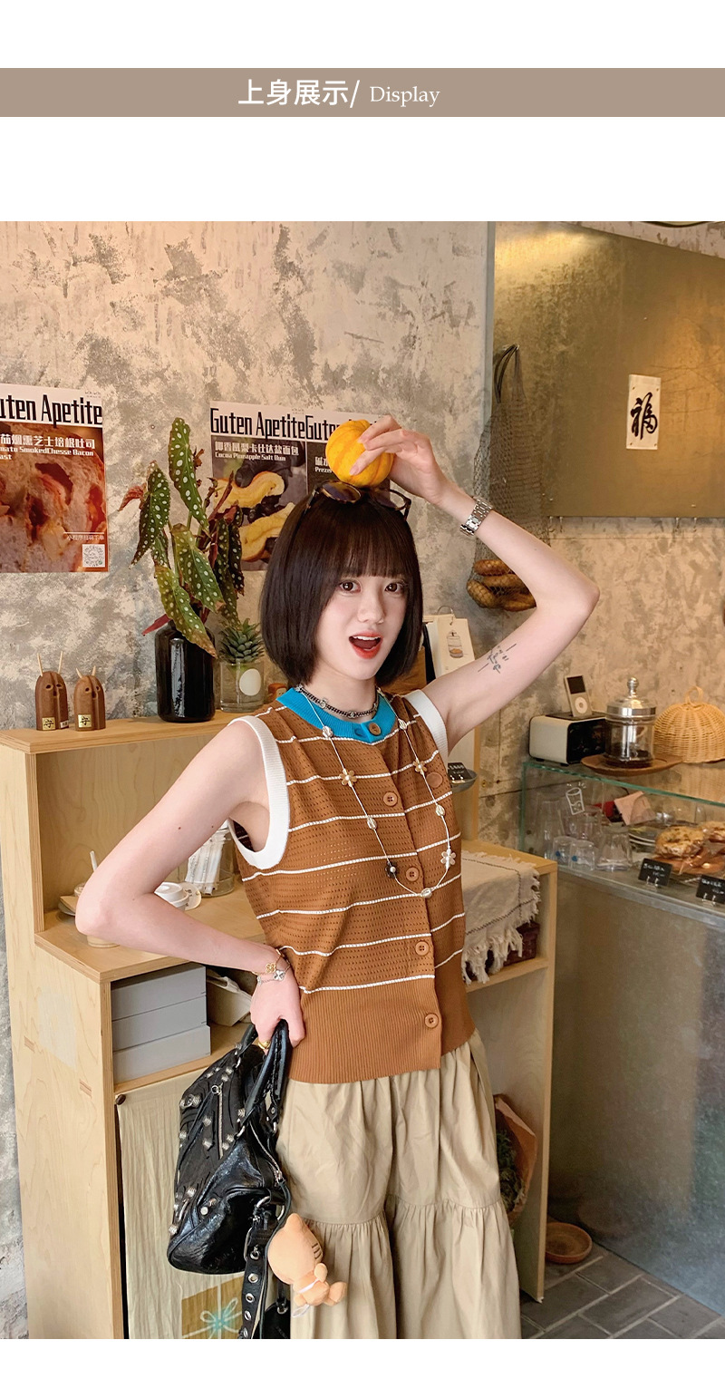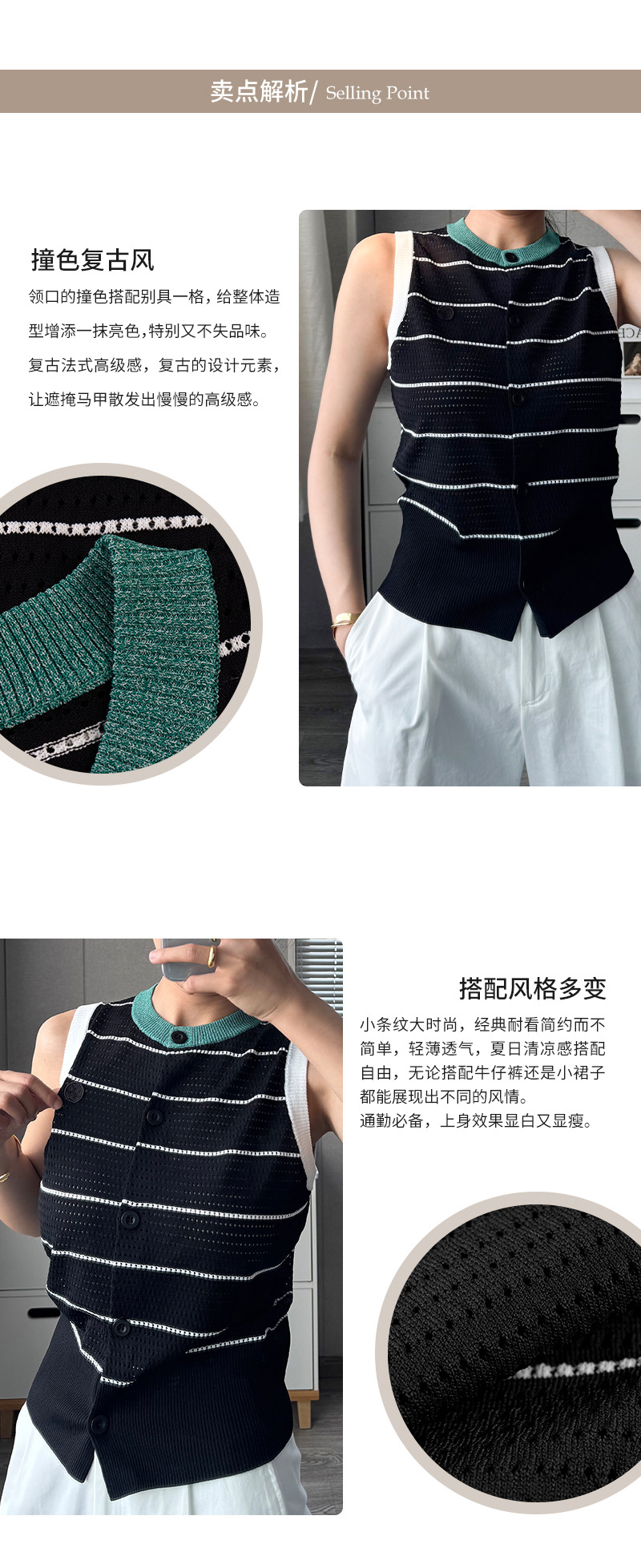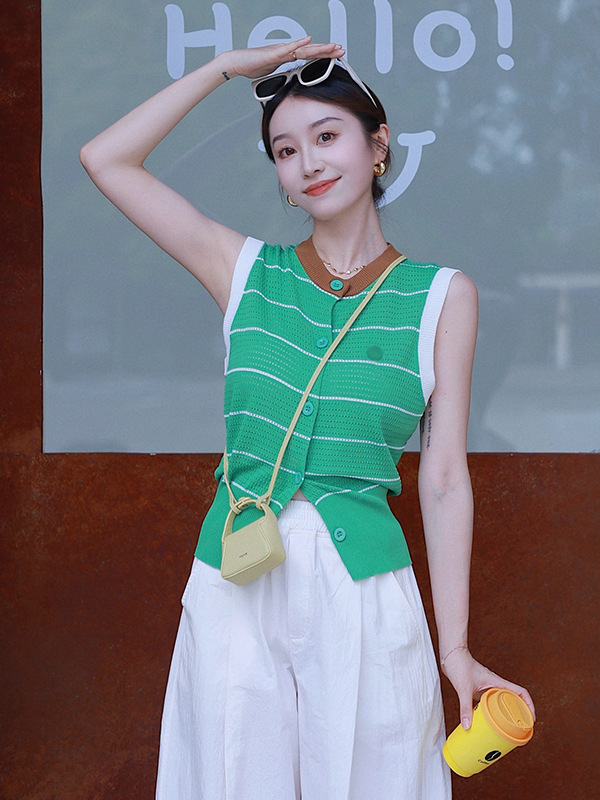 조끼 스타일의 배색 라운드넥 민소매 허리라인 슬리밍 디자인과 레이스 아웃워크 니트 여성용 2026년 신상 여성스러운 출퇴근룩스토어 가기