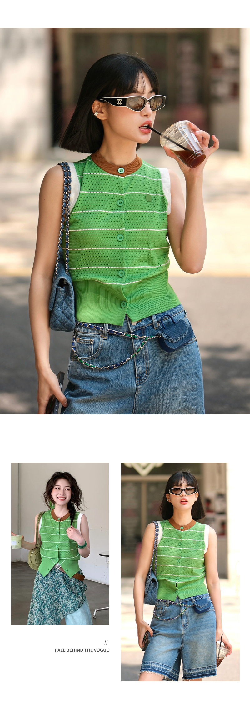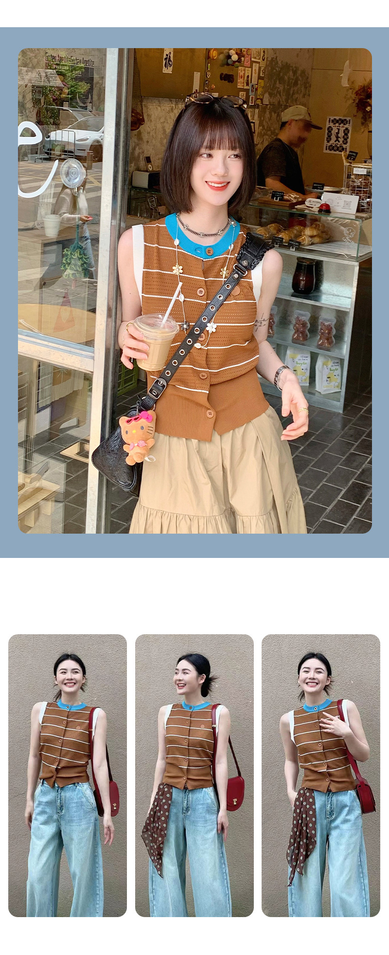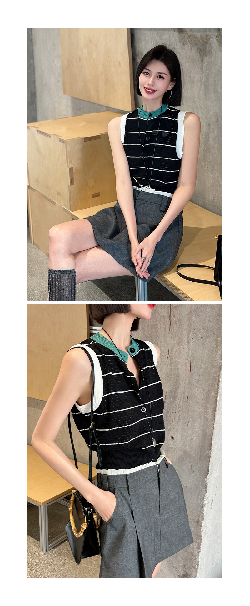 조끼 스타일의 배색 라운드넥 민소매 허리라인 슬리밍 디자인과 레이스 아웃워크 니트 여성용 2026년 신상 여성스러운 출퇴근룩스토어 가기