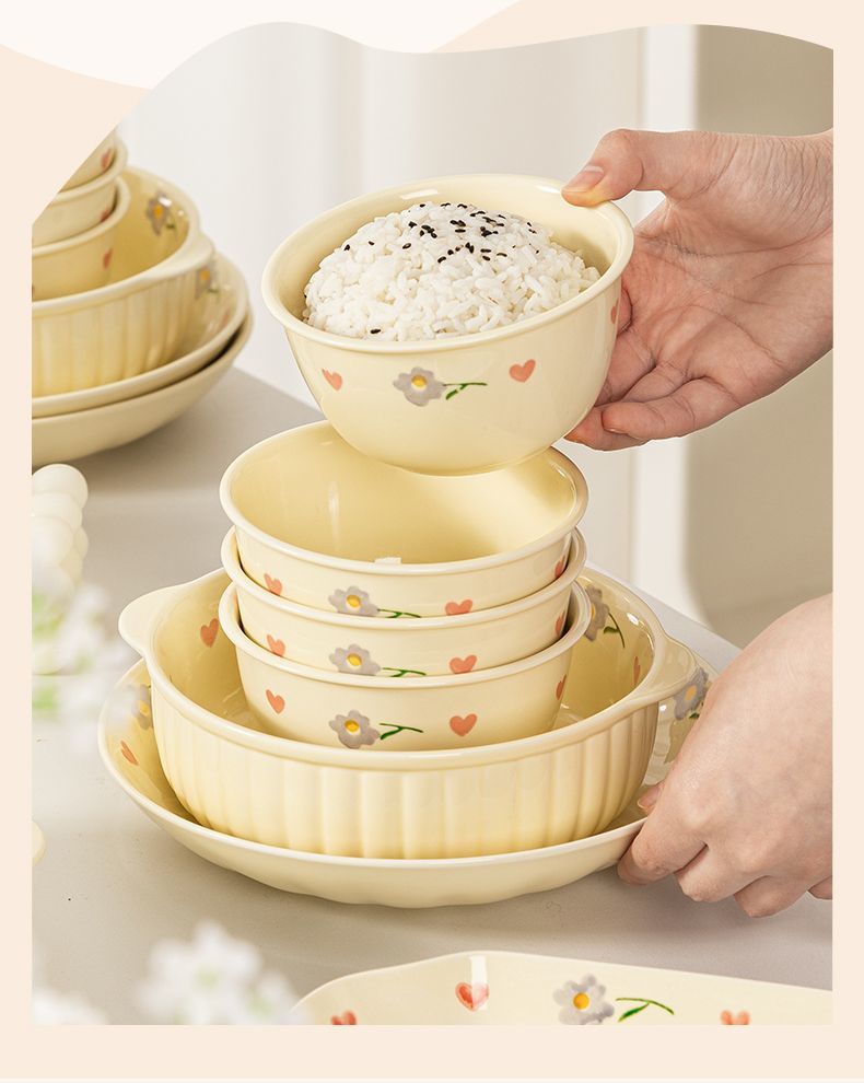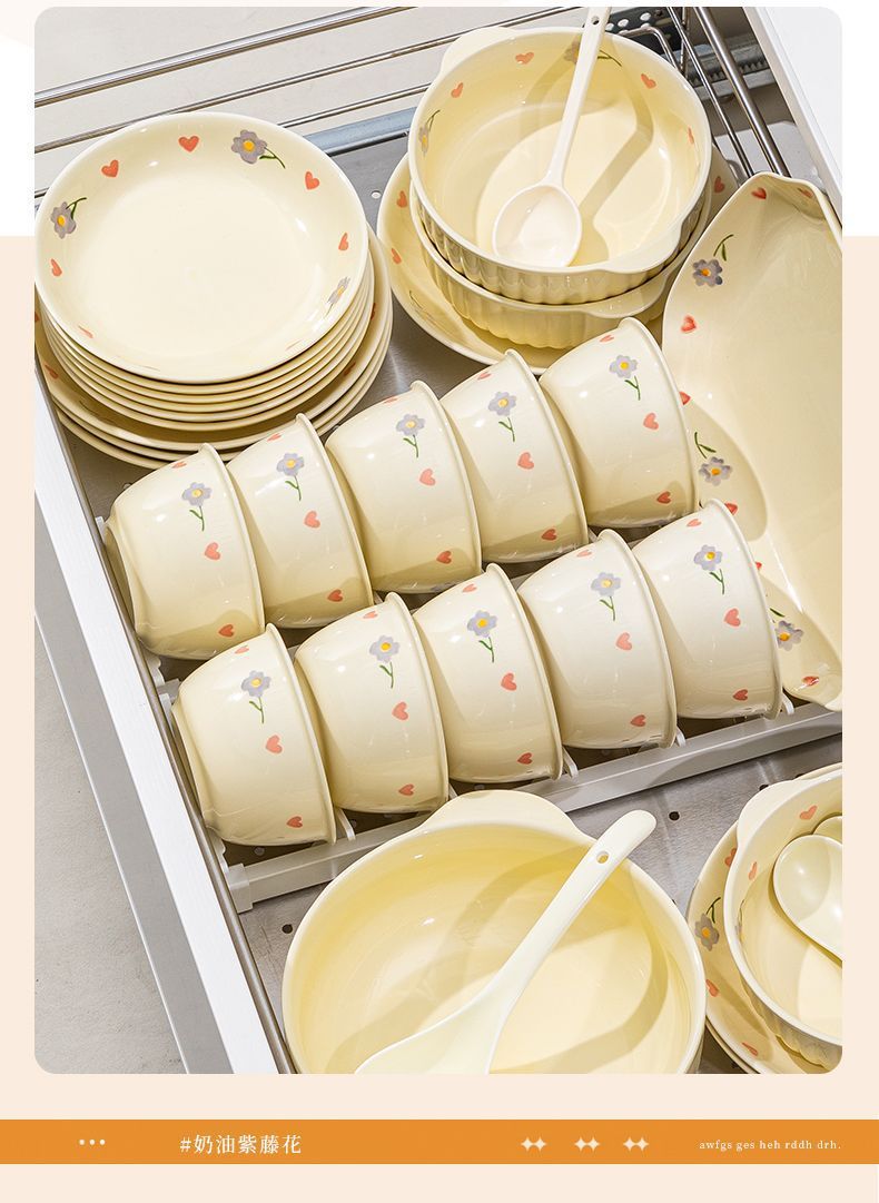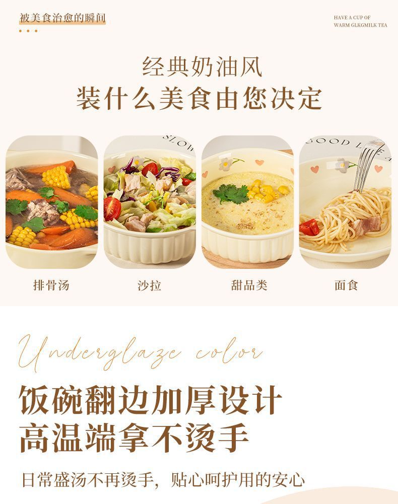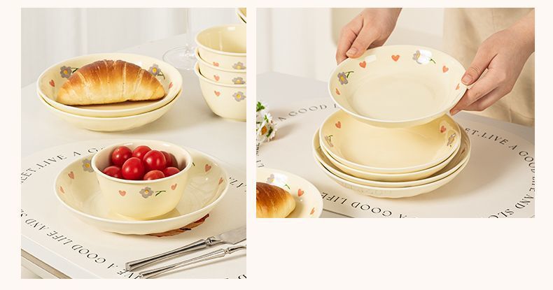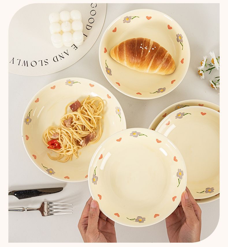 유약 컬러 세라믹 접시, 가정용 접시, 새로운 스타일, 고급스럽고 멋진 크림 스타일의 깊은 접시, 밥 그릇, 식기 접시스토어 가기