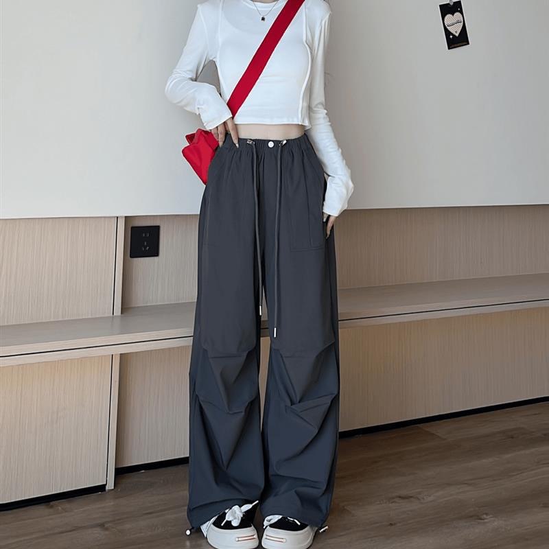 2025 디자인 센스 멀티 포켓 캐주얼 크록 팬츠 레트로 느슨한 직선 등반 넓은 다리 바지 야외 여성 스포츠 바지