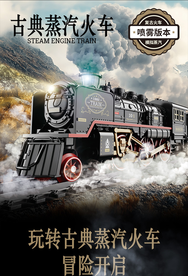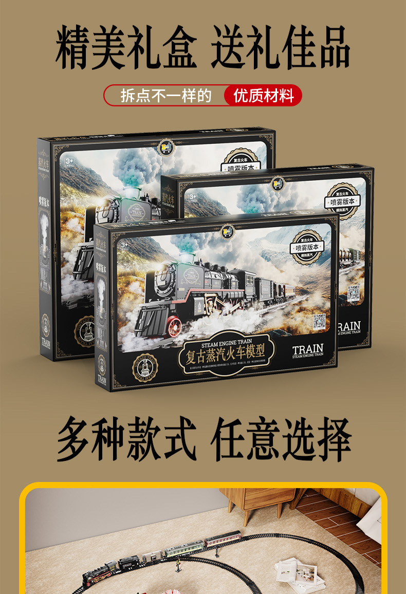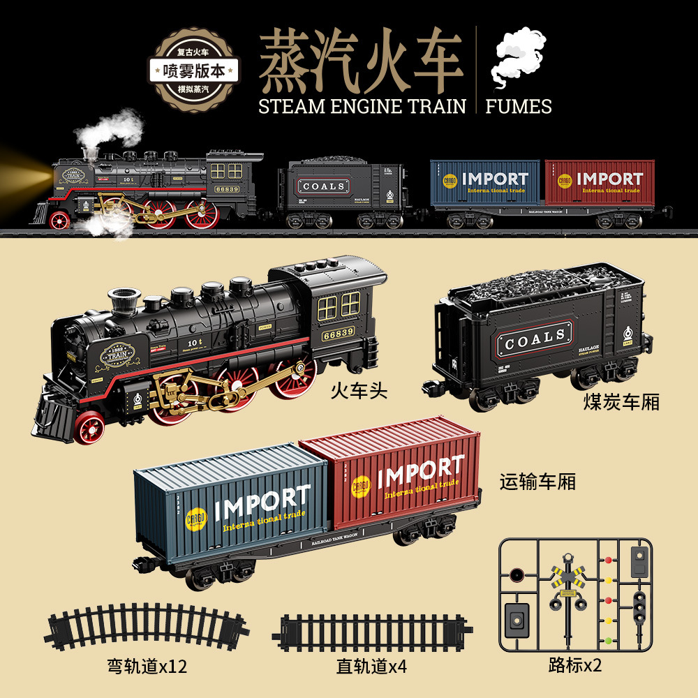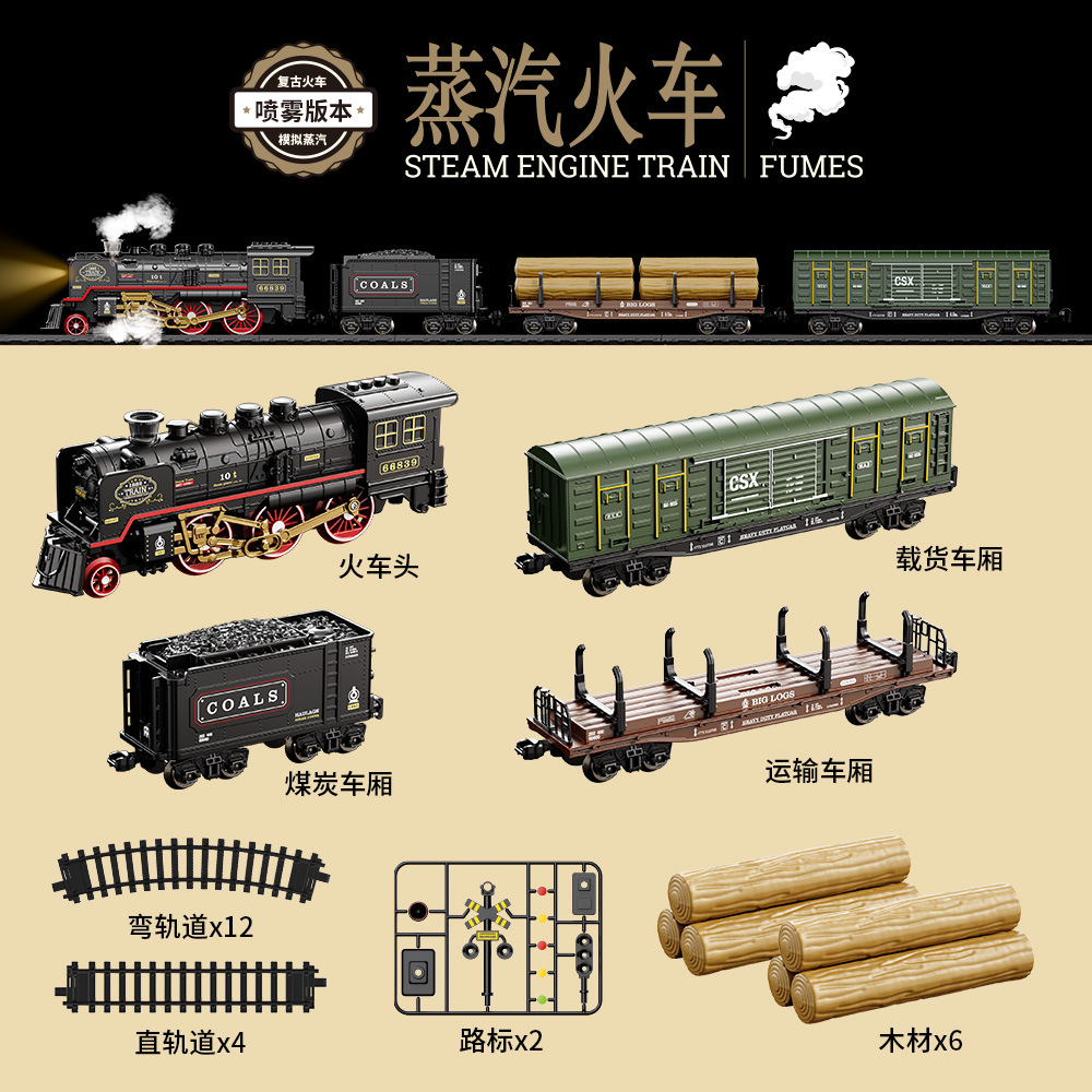 크로스 국경 수출 레트로 증기 기차 트랙 시뮬레이션 전기 스프레이 충전 크리스마스 보이 트랙 장난감스토어 가기