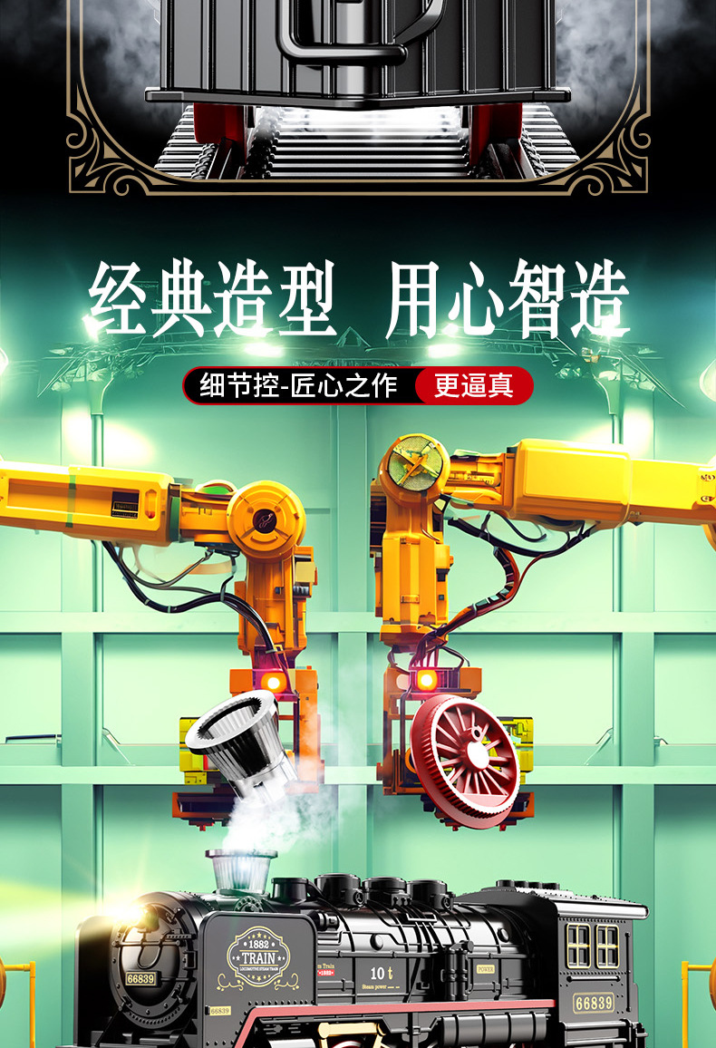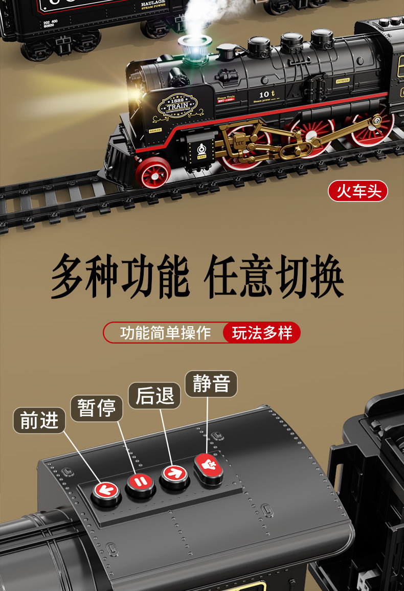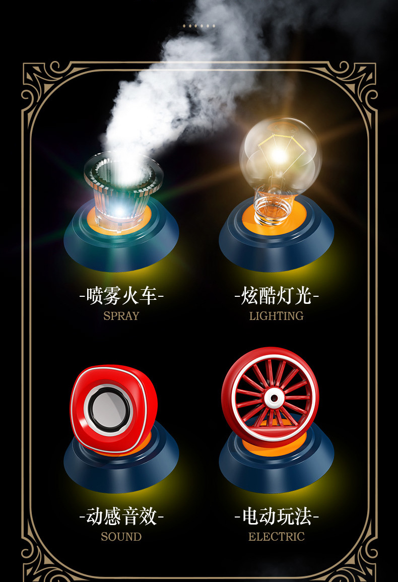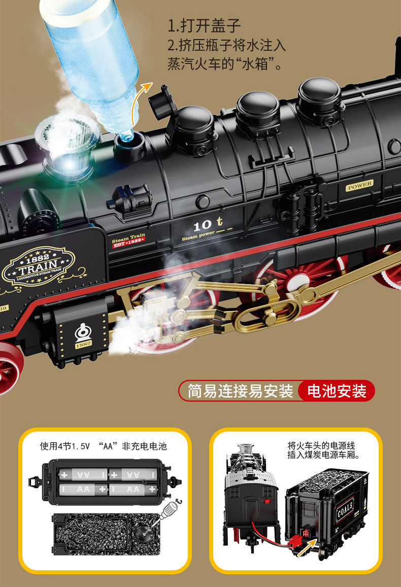 크로스 국경 수출 레트로 증기 기차 트랙 시뮬레이션 전기 스프레이 충전 크리스마스 보이 트랙 장난감스토어 가기