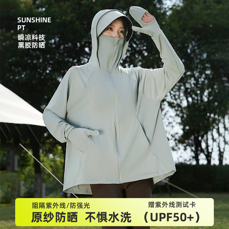 2025 새로운 손가락 끝 태양 보호 의류 여성의 여름 UV 보호 UPF50 원래 원사 얼음 실크 느슨한 검은 접착제 얇은 태양 보호스토어 가기